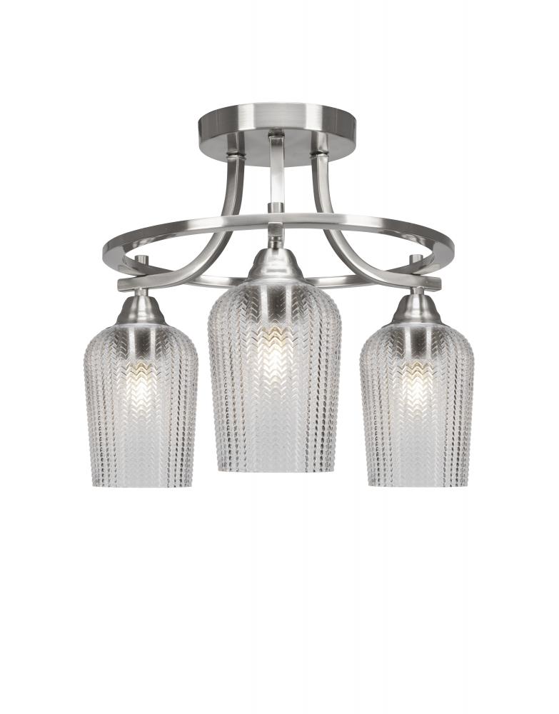 Paramount 3 Light Semi-Flush In Brushed Nickel Finish With 5 Clear Textured Glass