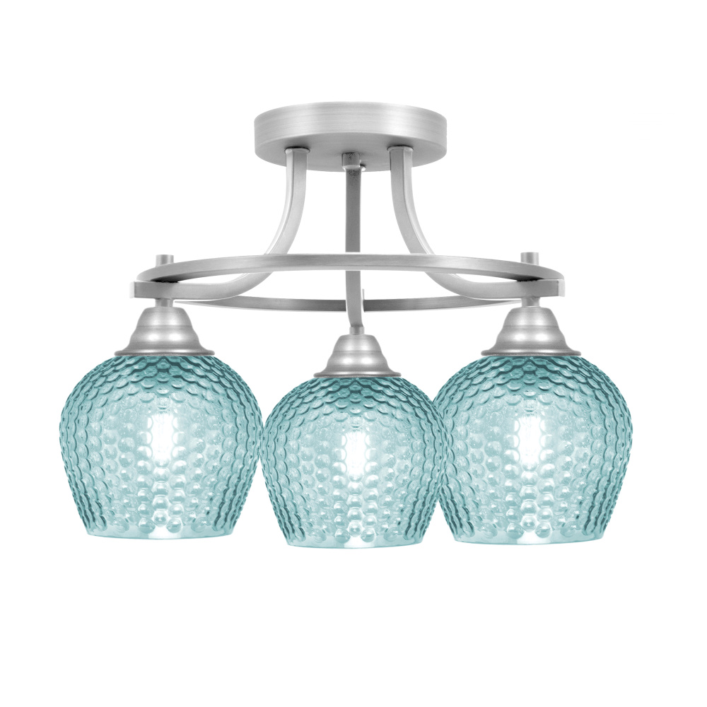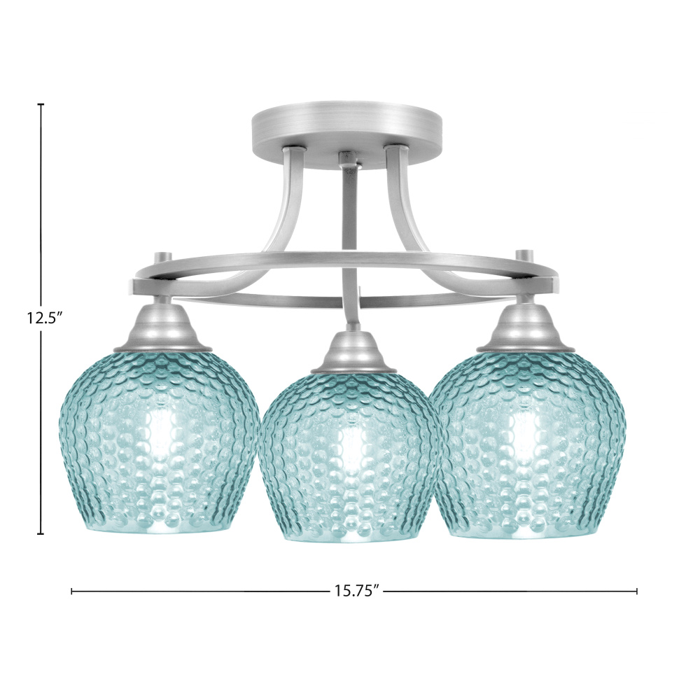 Paramount 3 Light Semi Flush Shown In Brushed Nickel Finish With 6 Turquoise Textured Glass