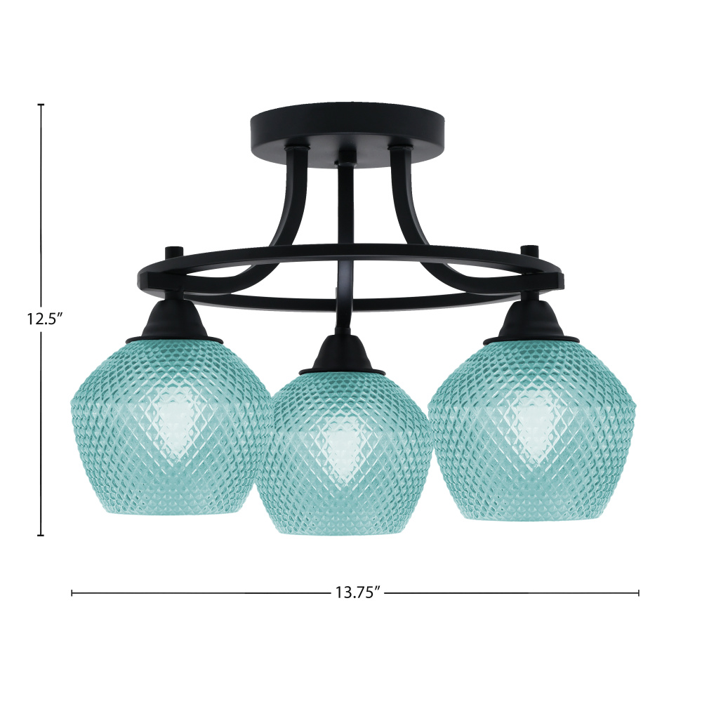 Paramount 3 Light Semi Flush Shown In Matte Black Finish With 6 Turquoise Textured Glass