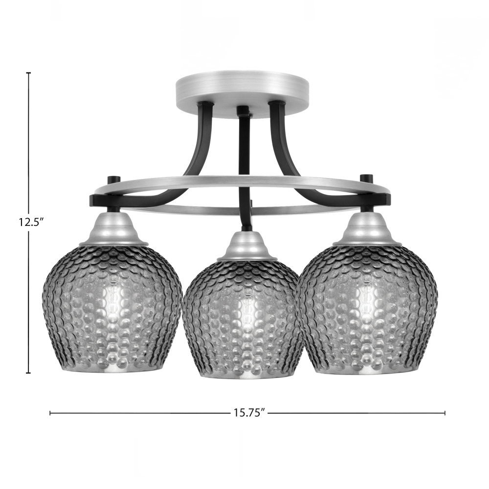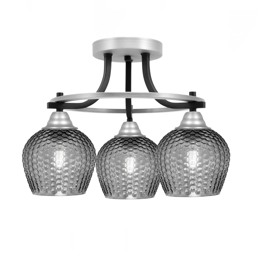 Paramount 3 Light Semi Flush Shown In Matte Black & Brushed Nickel Finish With 6 Smoke Textured Glass
