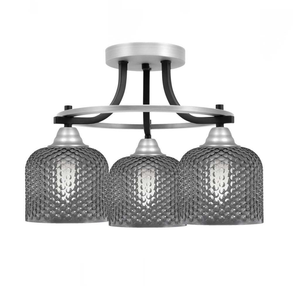 Paramount 3 Light Semi Flush Shown In Matte Black & Brushed Nickel Finish With 6 Smoke Textured Glass