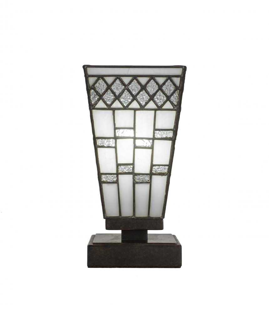 Toltec Lighting 52-DG-9104 Luna Accent Table Lamp Shown In Dark Granite Finish With 5 Square Pewter Art Glass