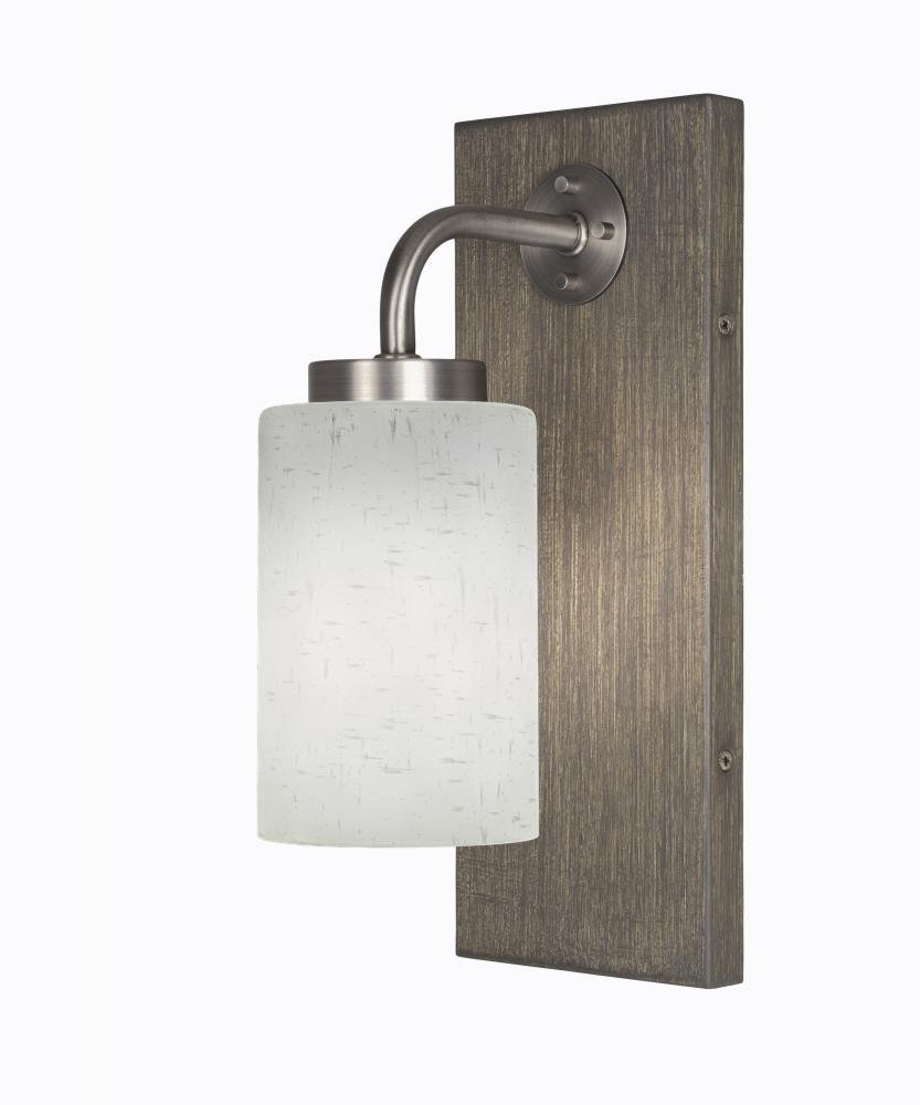 Toltec Lighting 1771-GPDW-310 Oxbridge Wall Sconce Shown In Graphite & Painted Distressed Wood-look Metal Finish With 4 White Muslin Glass