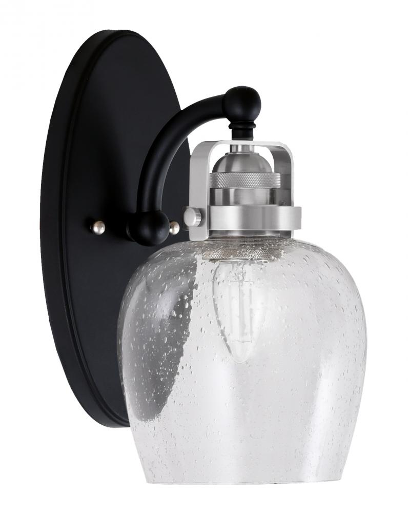 Toltec Lighting 1931-MBBN-4810 Easton 1 Light Wall Sconce Shown In Matte Black & Brushed Nickel Finish With 6 Clear Bubble Glass