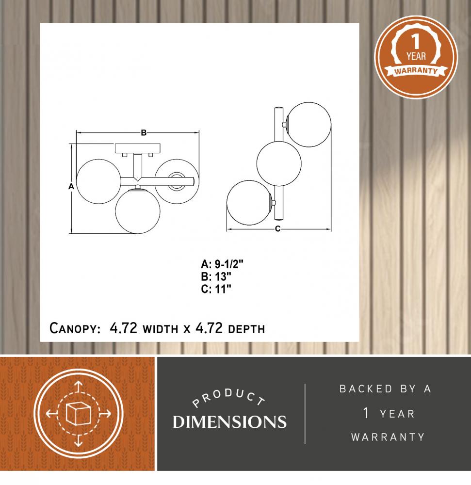 13-in W x 9.5-in H x 11-in D with 4.72-in W x 1-in H Canopy