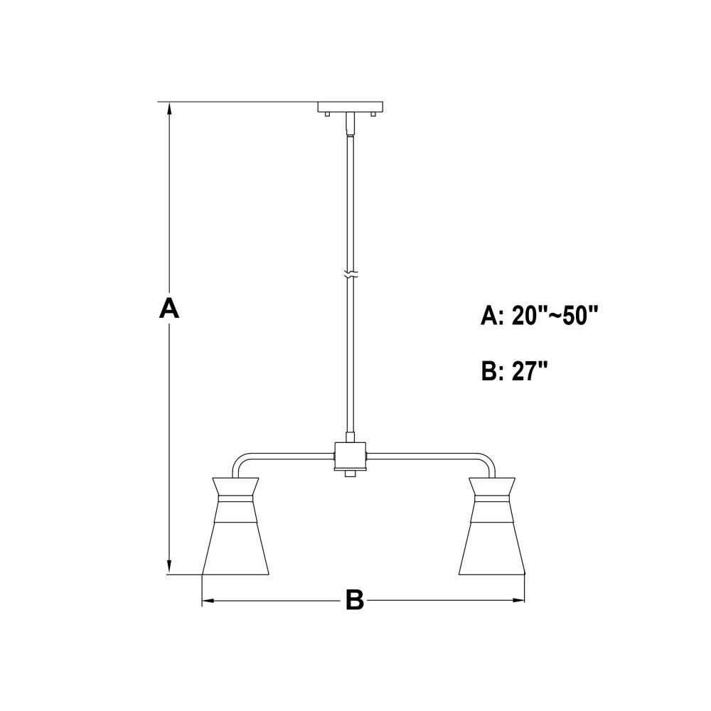 Adjustable height; 20-50 inches using 2 x 12-in, 2 x 6-in of included down rods, sloped ceiling compatible