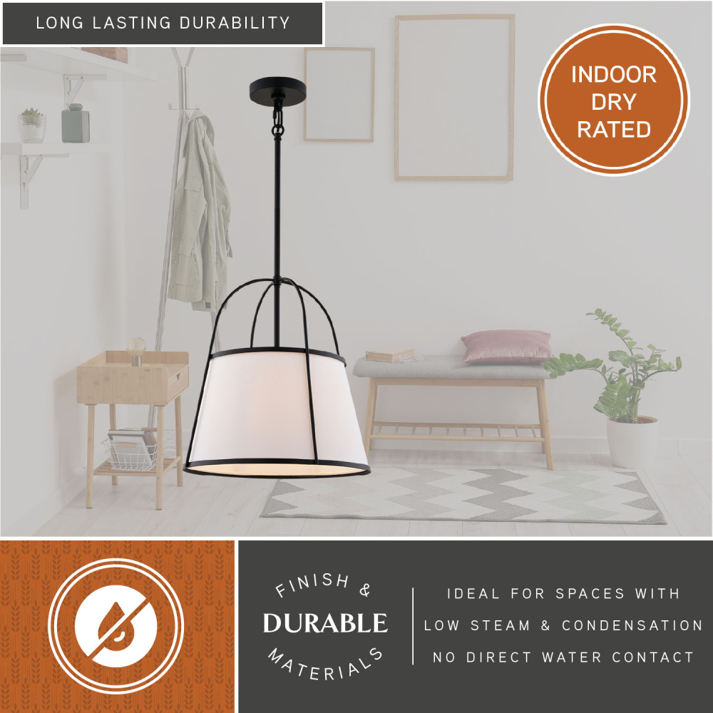 Craft a warm and inviting ambiance with the Marion Pendant. The classic design, reimagined for today's homes, complements both traditional and modern interiors. The on-trend matte black finish and crisp tapered white linen fabric shade deliver a touch of mid-century modern sophistication, effortlessly transforming any room. Designed to impress, the Marion ceiling light fixture is the perfect upgrade for homeowners with discerning taste.