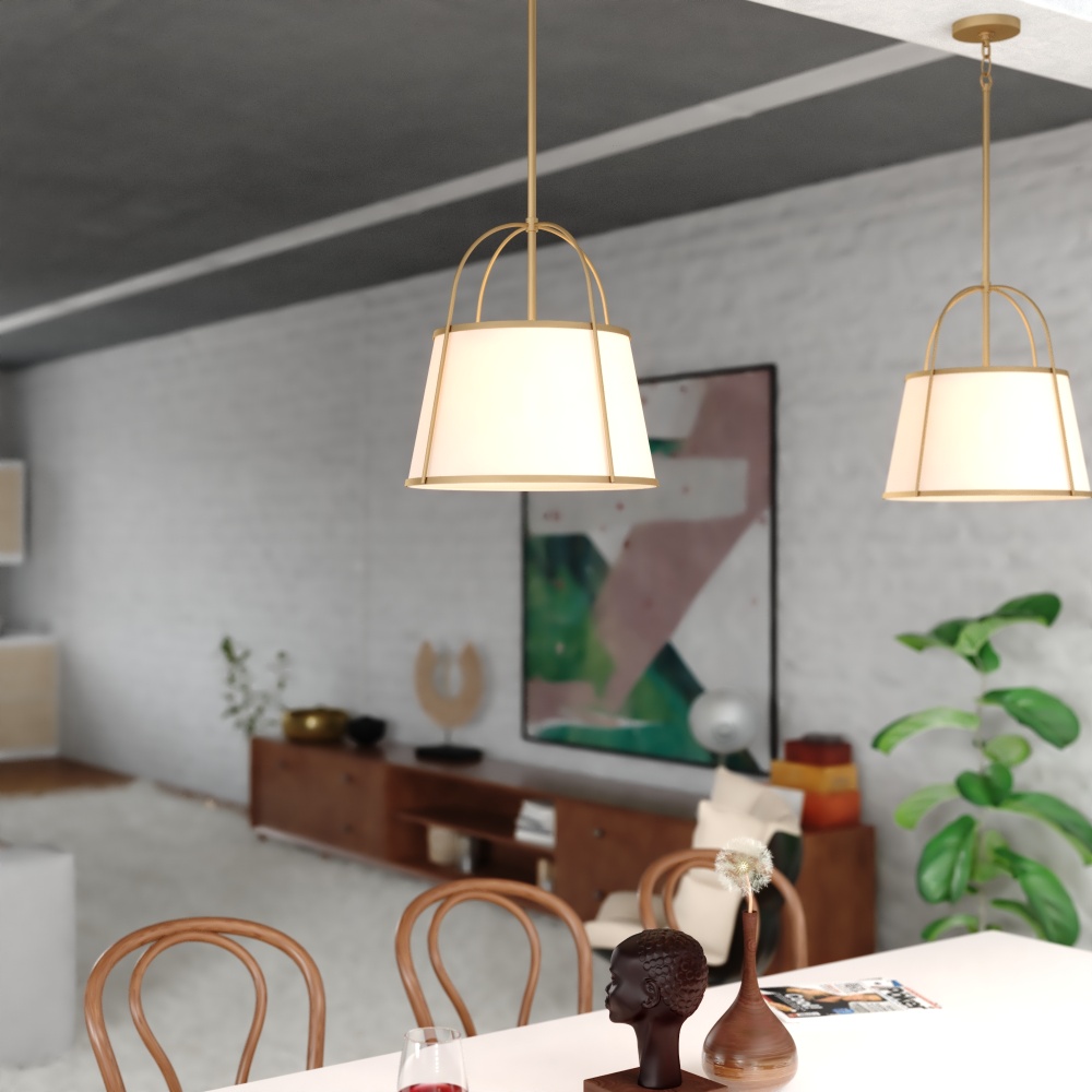 Craft a warm and inviting ambiance with the Marion pendant. The classic design, reimagined for today's homes, complements both traditional and modern interiors. The on-trend mystic gold finish and crisp tapered white linen fabric shade deliver a touch of mid-century modern sophistication, effortlessly transforming any room. Designed to impress, the Marion ceiling light fixture is the perfect upgrade for homeowners with discerning taste.