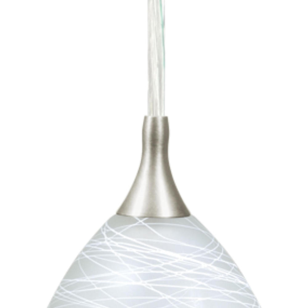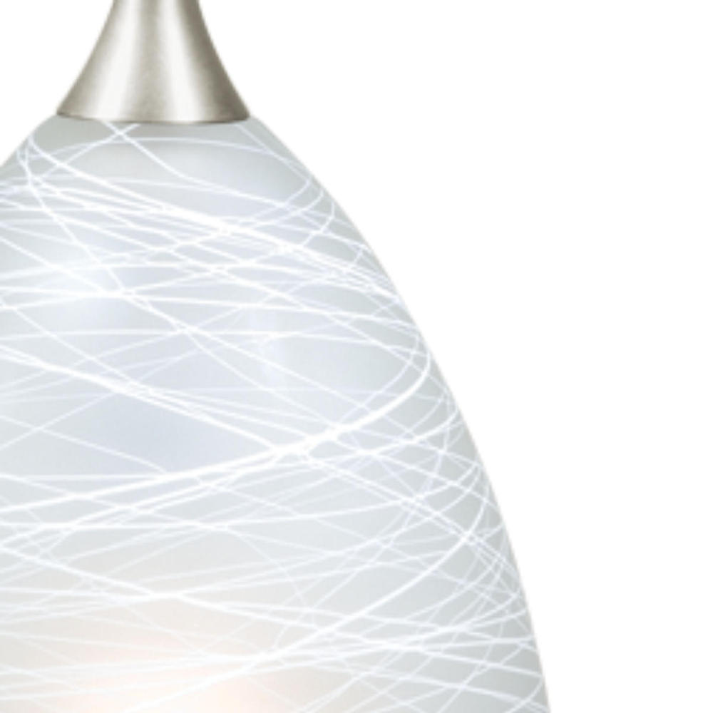 The Milano collection of mini pendant lights feature softly radiused hand-blown glass that gracefully blends into almost any decor. Because each glass is handcrafted utilizing century-old techniques, no two pieces are identical. The white cocoon glass has spun tones of white and is housed in a satin nickel finish for a contemporary and artistic look. Install this mini pendant individually or in a group; ideal for kitchens, dining areas, or bar areas.