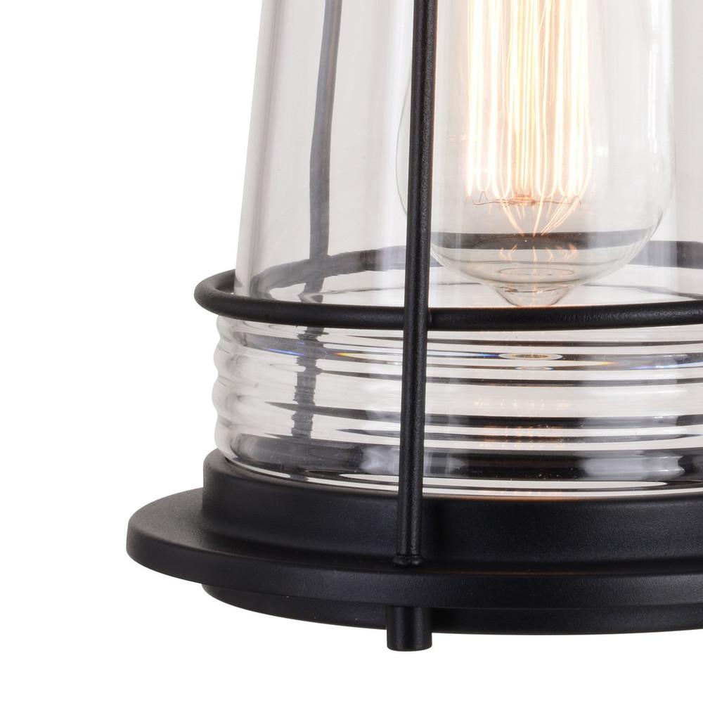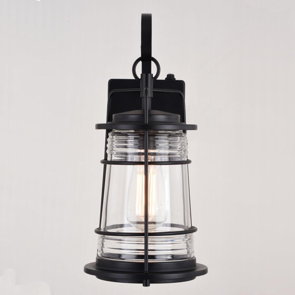 Coastal styling is handsomely brought to life in this wall fixture called Montauk. Heavy ribbed glass sits inside a textured black cage giving this lantern style and flair. A slight taper allows the light to shine brightly below. The Montauk is a sure way to light the way home. This outdoor wall light is ideal for your porch, entryway, garage, or any other area of your home.