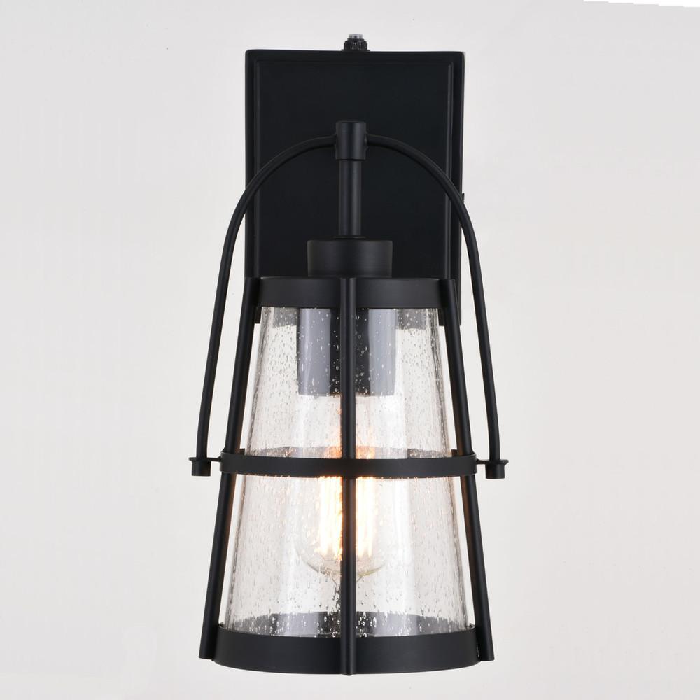 Black Cage Clear Cone Deck Dimmable Down Dusk to Dawn Energy Efficient Saving Entrance Entryway Exterior Fixture Front Door Garage Glass Industrial Lamp Lantern LED Compatible Lighting Matte Mount Outdoor