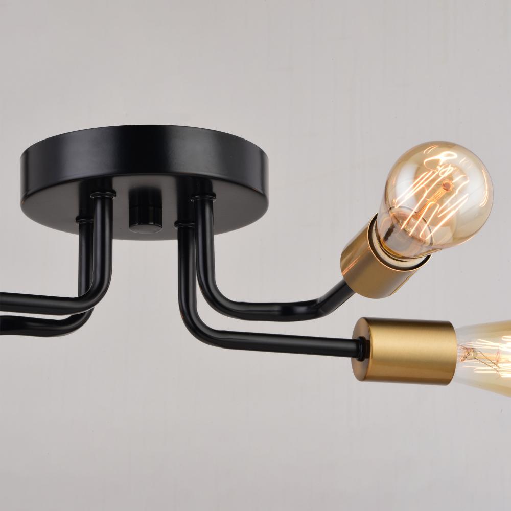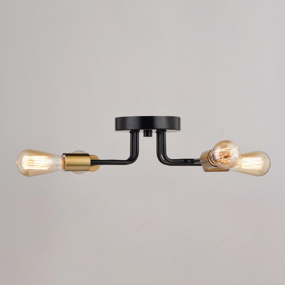 With a strong focus on minimalism, the Rhine collection combines a distinctly industrial design with contemporary angles at a great price. A mix of black and natural gold brass finishes combined with exposed bulbs are simple in concept yet artistic in look. Bring signature character to entrances, bedrooms, home offices, hallways, living rooms, and kitchens with this semi flush mount ceiling light fixture.