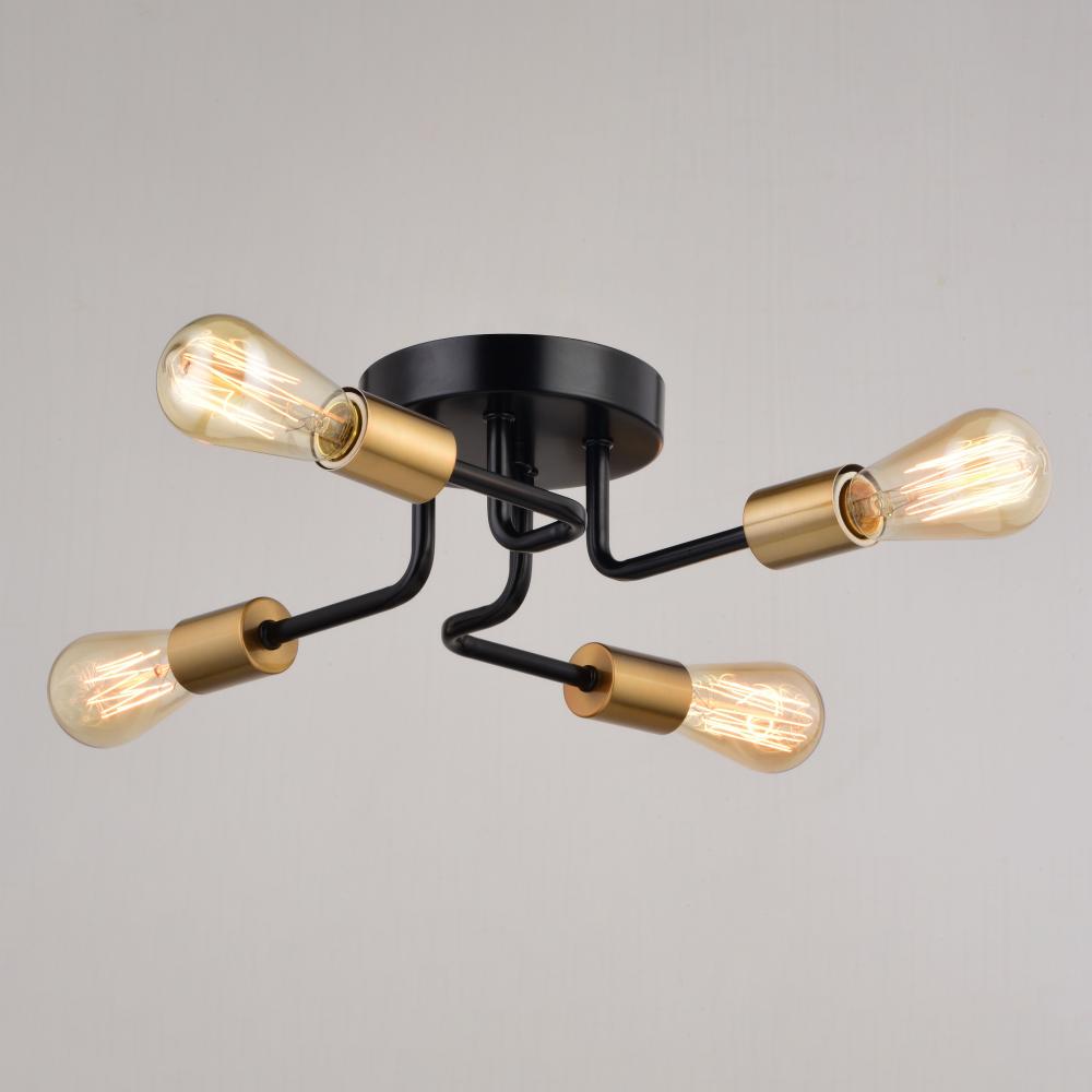 Rhine 15.75-in. 4 Light Semi-flush Mount Black and Natural Brass