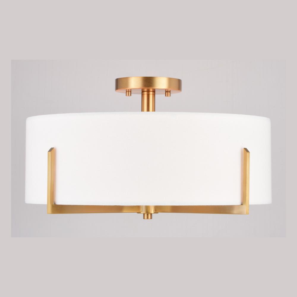 The Surrey collection combines a natural brass frame with a crisp white linen drum shade creating an elegant Mid-century modern ceiling light for today's on-trend spaces. A white diffusor softens the glow below. Add this semi flush mount fixture to any hallway, bedroom, or living space to complete your look.