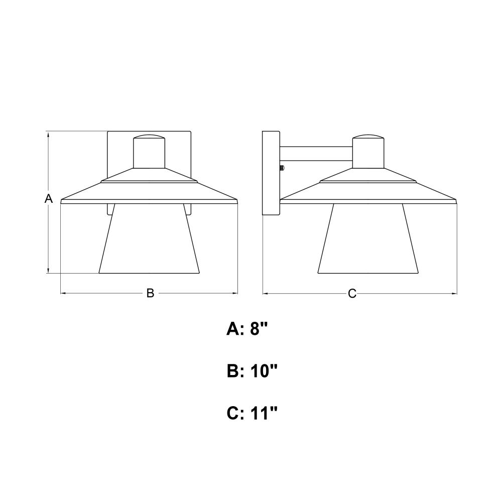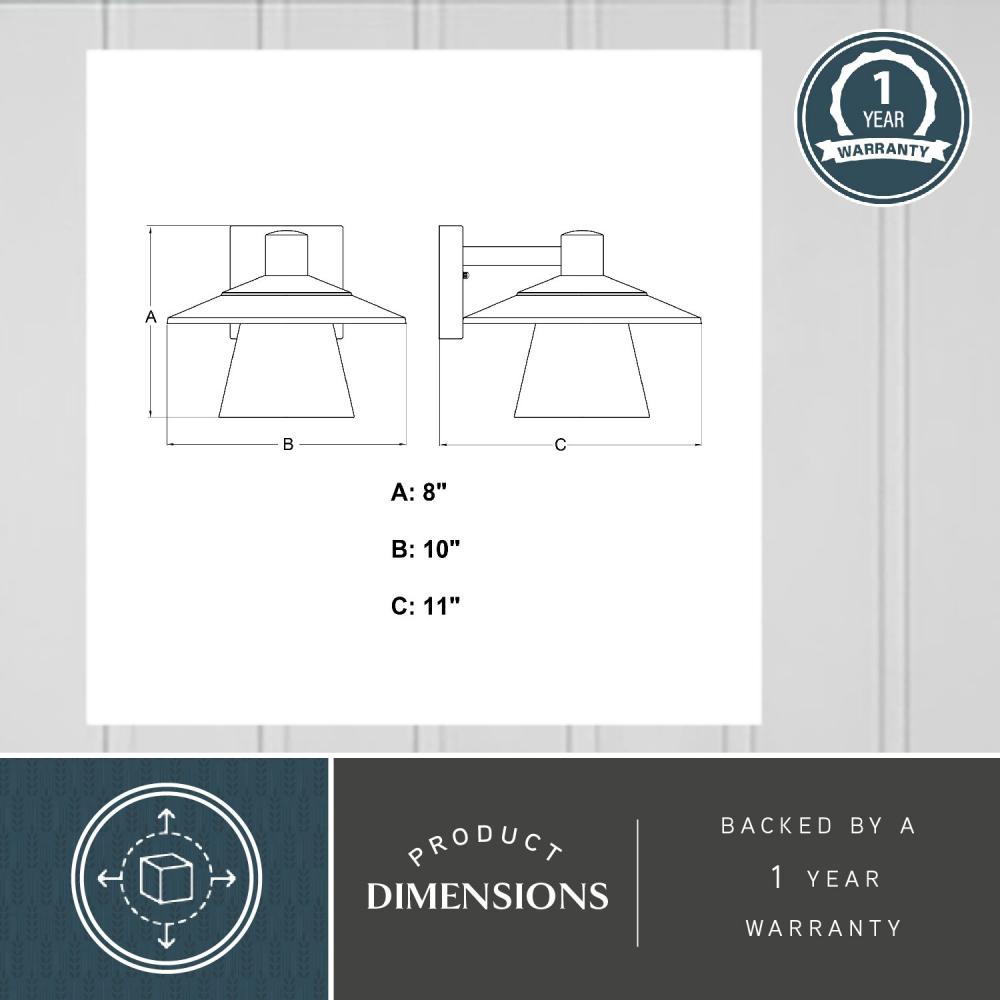 10-in W x 8-in H x 11-in D with 4.75-in W x 4.75-in H backplate