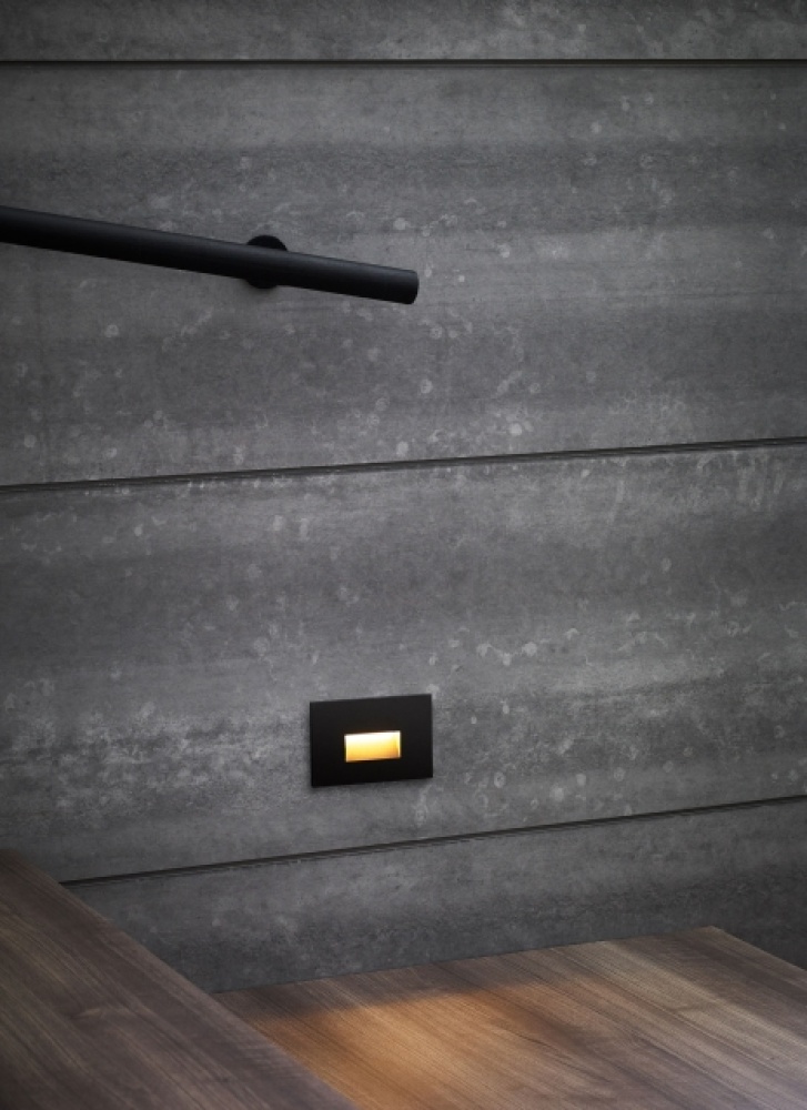 Ikon by Sean Lavin is an outdoor step light featuring a contemporary design with a minimized rectangular aperture that aims illumination downward to light stairs with minimal glare. Ideal for wayfinding and added safety after dark. The Ikon exterior step light features selectable CCTs (2700K or 3000K) and can be installed as a 120V fixture or as a low-voltage 12V fixture (remote low-voltage transformer required). The Ikon LED fixture is wet listed IP66 which makes it ideal for commercial applications as well as for residential use. Available in modern finish options.