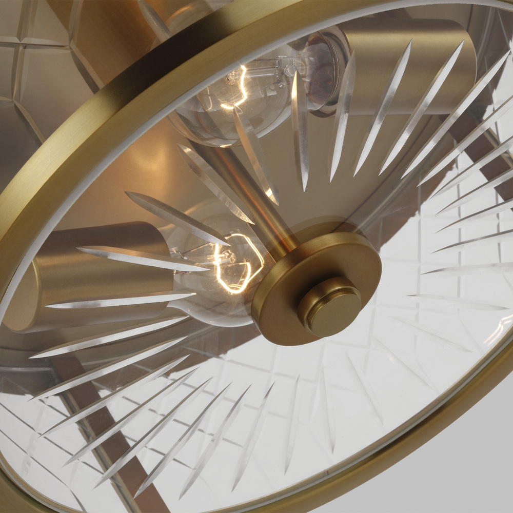 Finding inspiration from patterns, the AH by Alexa Hampton Alec two light flush mount in the burnished brass finish lend a classical quality that's totally transitional. Cut glass and candelabra-style lamping is delicately placed within an artisanal finished steel frame, allowing for enough relaxed lighting for any space in your home. Alexa Hampton is an industry force who honors tradition and commits to the future, providing smart, stylish, design-rich solutions for every aspect of the home. Alexa Hampton joins Visual Comfort Studio family with her new AH Alexa Hampton Collection that features fresh takes on traditional looks, beautiful and unique hand applied finishes, and stunning thoughtful inspired pieces.