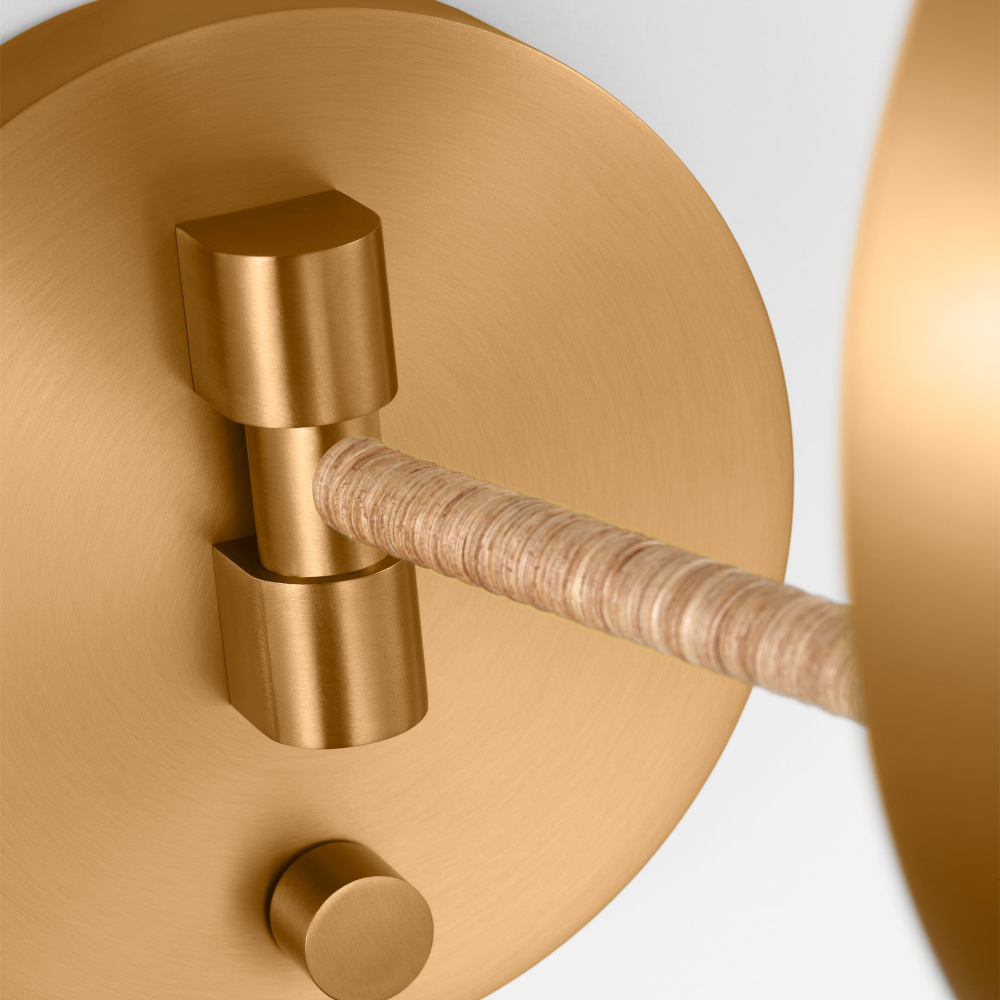 The Balleroy brass lighting series Christiane Lemieux is a true embodiment of design and style. This collection boasts a perfect dome shape designed for timeless beauty, each piece meticulously crafted to captivate and illuminate your space. What sets this collection apart is the unique incorporation of rattan-wrapped arms and stems, adding a touch of organic detail and warmth to the luxurious brass finish. The intertwining of these materials creates a harmonious blend of tradition and contemporary design, making each fixture not just a source of light but a work of art. Elevate your interior decor with the beauty of our Balleroy lighting line, where exquisite shapes meet the rustic allure of rattan, resulting in a truly designed lighting experience.