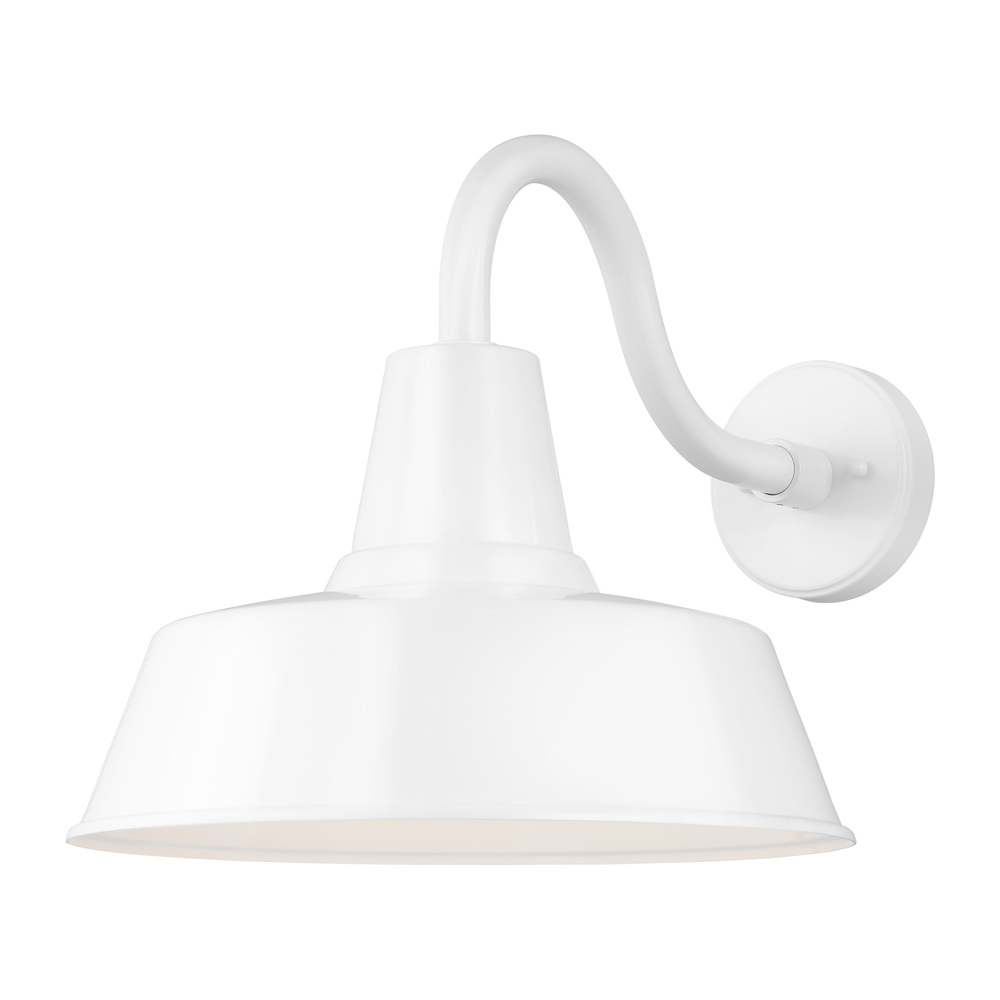 The Barn Light one light outdoor wall fixture in white enhances the beauty of your property, makes your home safer and more secure, and increases the number of pleasurable hours you spend outdoors. The classic Barn Lights are hand crafted in aluminum and coated in a Galvanized or Blacksmith finish. Ideal for large or heavily trafficked outdoor areas that need plenty of downward directed light. The oversized Barn Lights make great accents to any commercial lighting plan or residential garage entry, shed, or patio. To customize your look, a 6" extender is included with every fixture. Also available as Dark Sky with four size options to choose from.