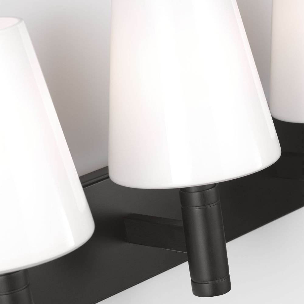 The Beckham Classic four light vanity fixture in aged iron provides abundant light for your bath vanity, while adding a layer of today's style to your interior design. Traditional silhouette with modern barrel detail on both the central hub and socket