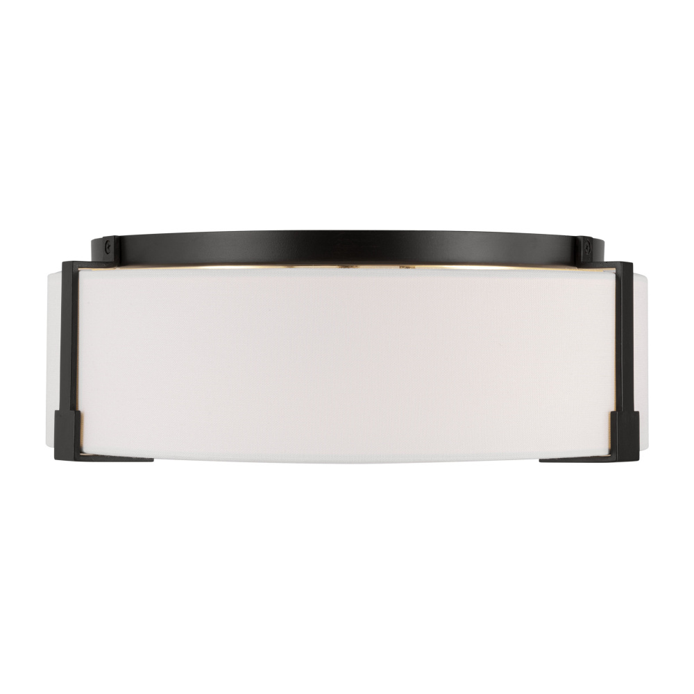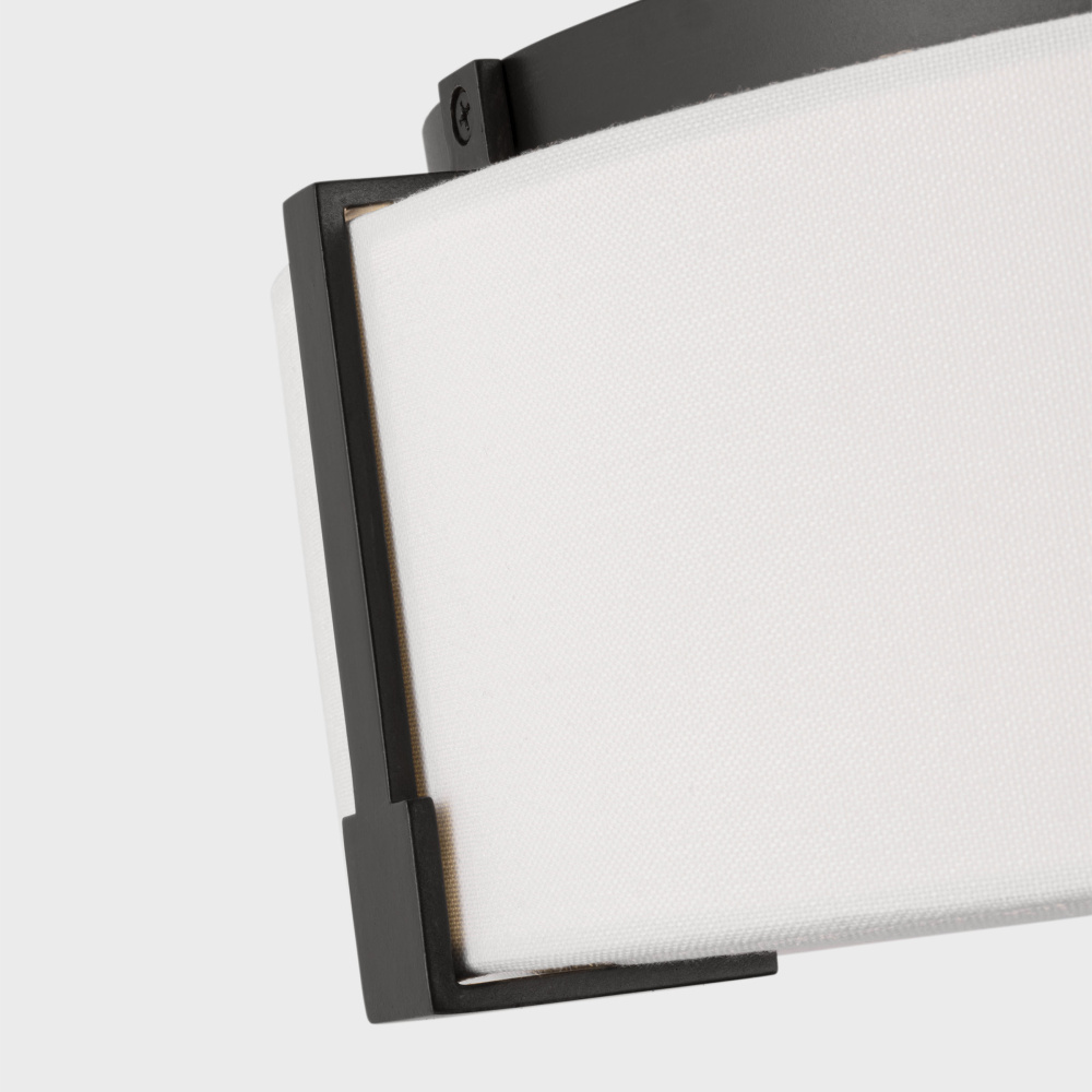 Crafted with Steel in a Aged Iron finish with white linen shade