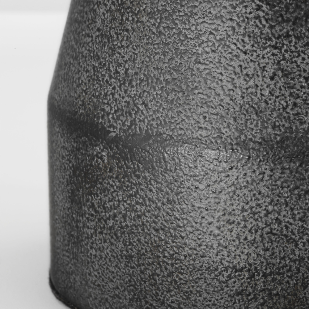 Sculptural cast-metal bases in minimalist forms featuring artisanal texture in 2 finishes