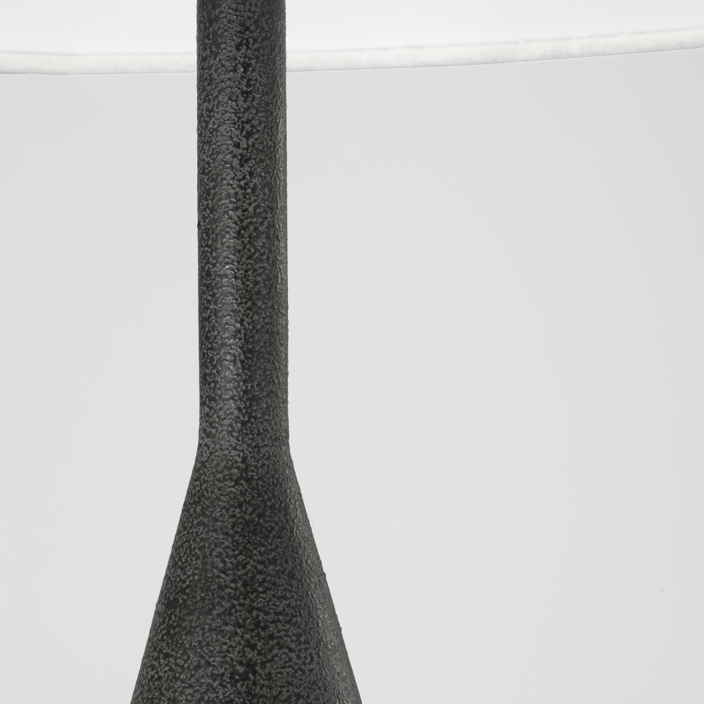 Crafted with Steel in a Black Pearl finish with white linen fabric shade