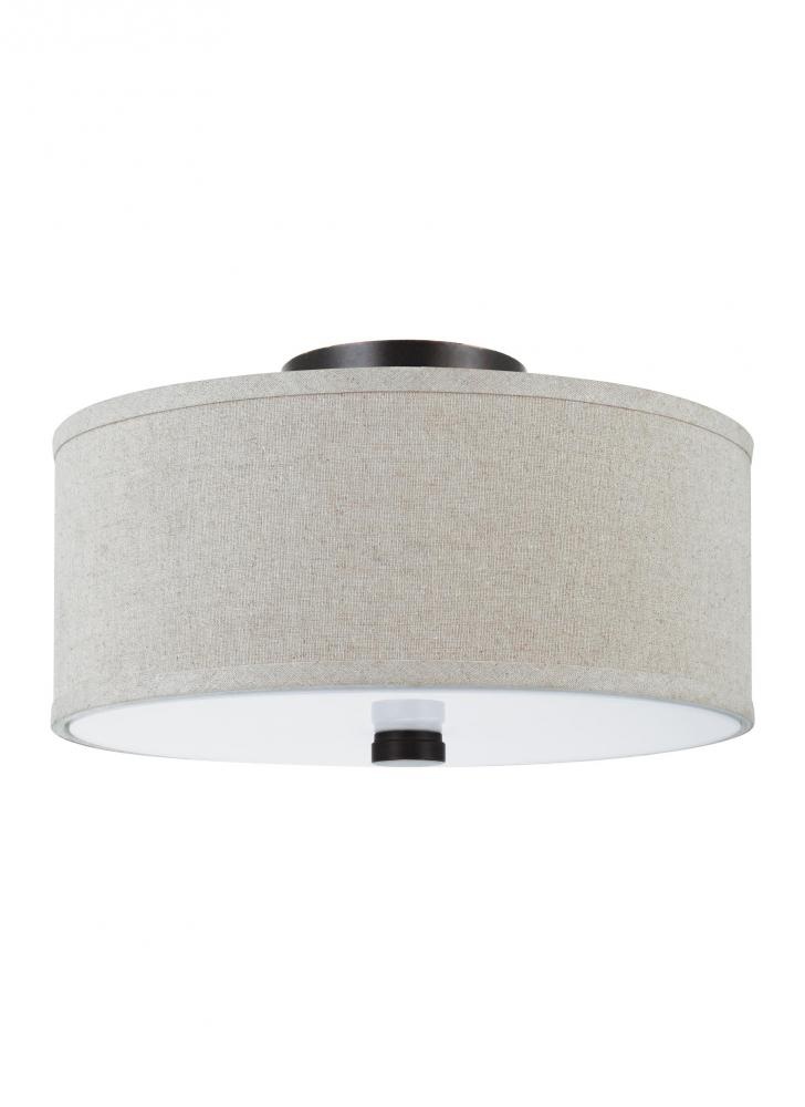 The Dayna Shade Pendants two light semi flush fixture in bronze is the perfect way to achieve your desired fashion or functional needs in your home. The sleek, fabric shades and smooth acrylic diffusers of the Dayna shade pendant collection by combine to create a warm glow. Finished-off with decorative metal finials to secure the White Acrylic diffusers in place, these fixtures convey a tailored look while creating both ambient and task lighting. The assortment includes two-light, three-light and four-light pendants and a two-light flush /semi-flush convertible all with classic drum shades, as well as a large four-light pendant with an angular trapezoidal shade, and all are offered in either Brushed Nickel or Burnt Sienna finishes with either Cream or Beige Faux Linen fabric shades. Both incandescent lamping and ENERGY STAR-qualified LED lamping are available; all fixtures are California Title 24 compliant.
