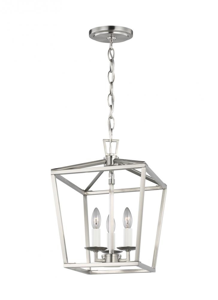 The Dianna three light indoor pendant in brushed nickel is the perfect way to achieve your desired fashion or functional needs in your home. The open, airy iron frame of this three-dimensional lantern brings depth and structure to any space.