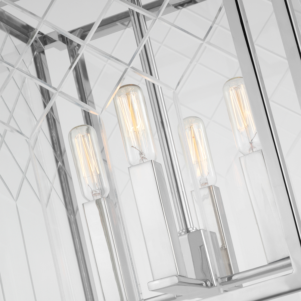 The Erro Series by Alexa Hampton was thoughtfully inspired for every aspect of the home, creating a classic and timeless mood. Beautiful etched glass shade creates a diamond-like effect from the top to the fixture's center. Erro is full of impressive dimensions and visual appeal. The assortment includes a small, medium, and large lantern and a wall sconce in two striking finishes.
