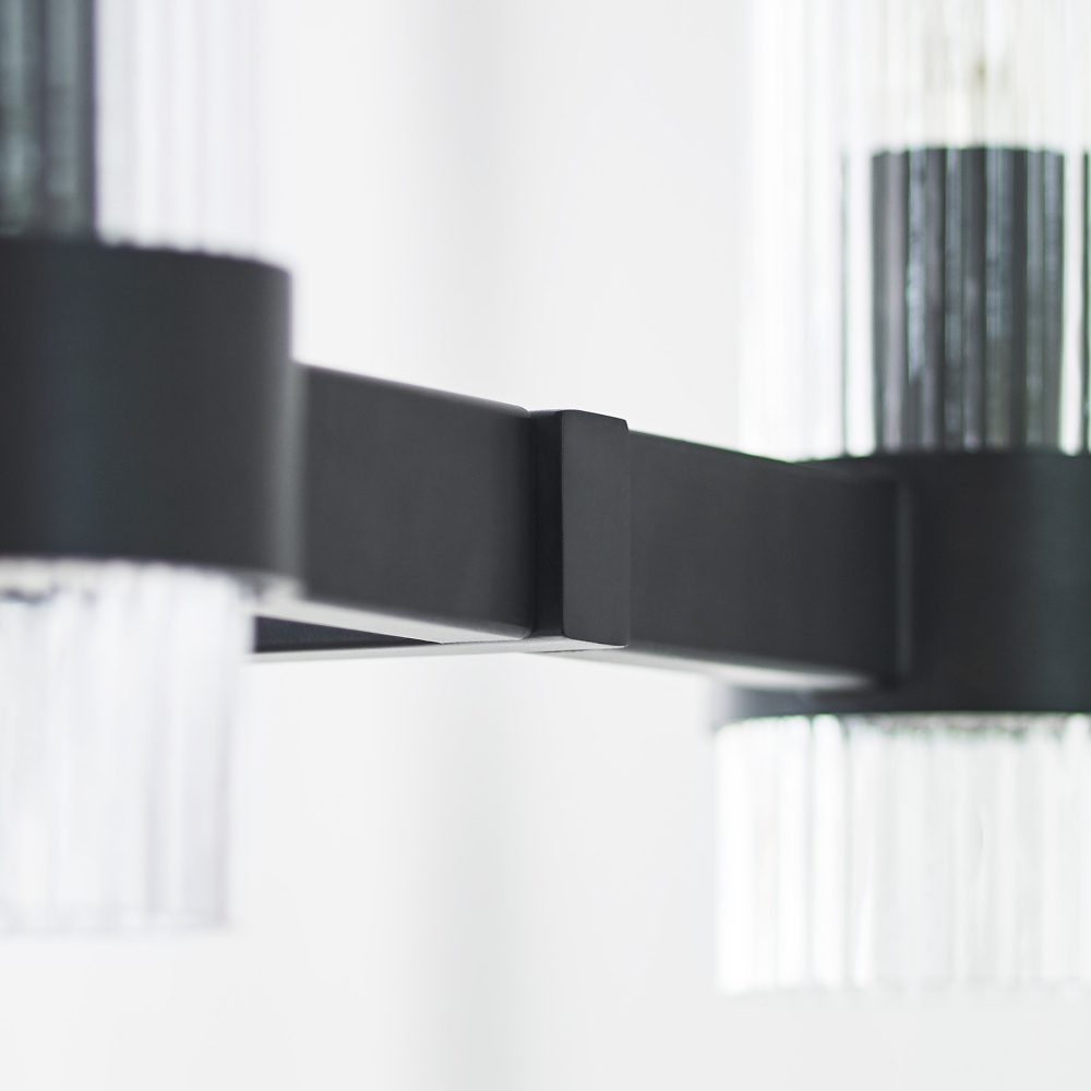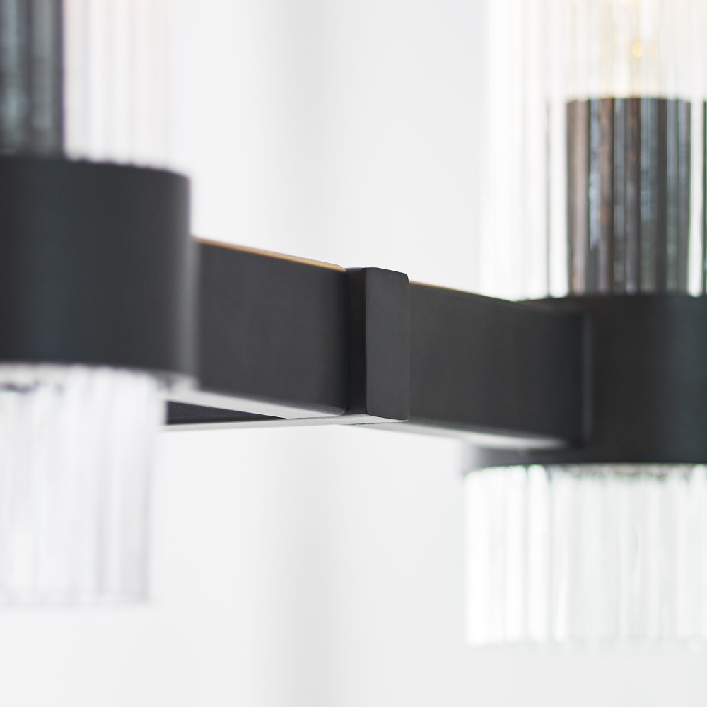 Designed by Chapman & Myers, the Geneva ten light billiard island chandelier in Aged Iron is the perfect way to achieve your desired fashion or functional needs in your home. A fluted shade forms an elegant, dynamic silhouette balanced by a strong frame of Aged Iron, Burnished Brass, or Polished Nickel.