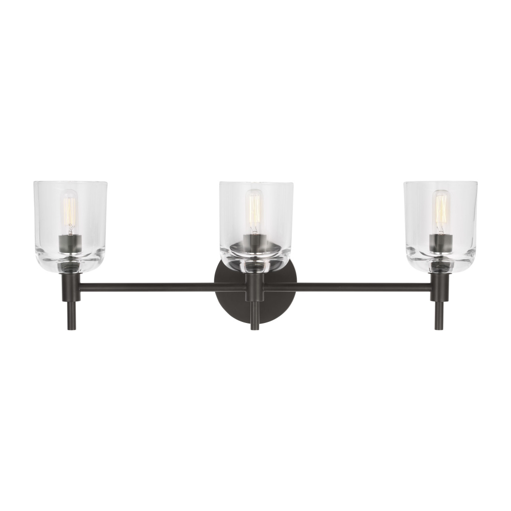 Crafted with Steel in a Aged Iron finish with clear glass shades