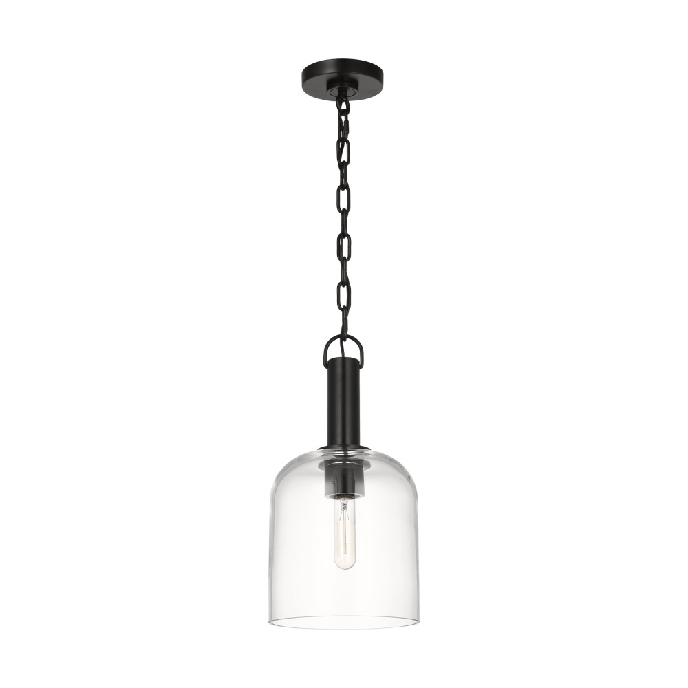 Crafted with Steel in a Aged Iron finish with clear glass shade