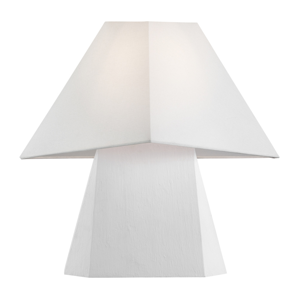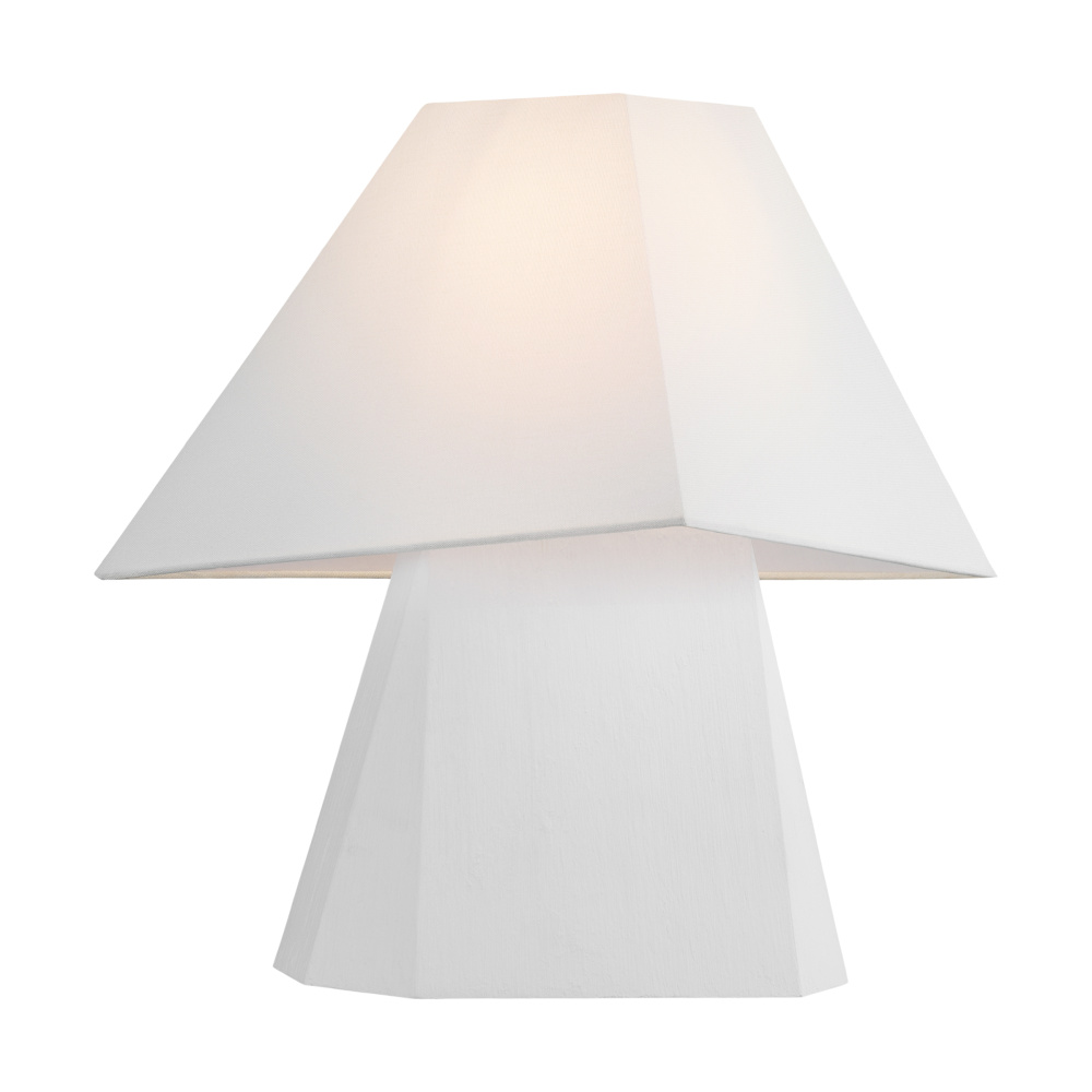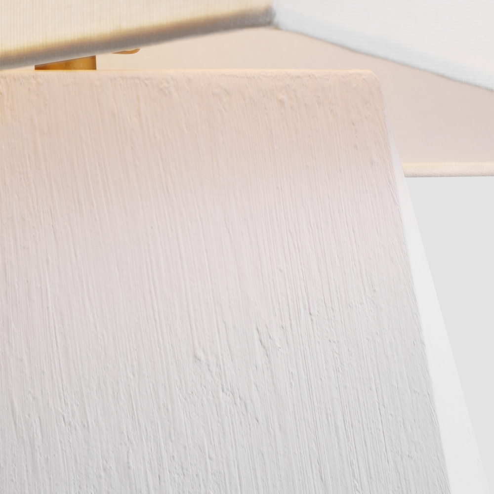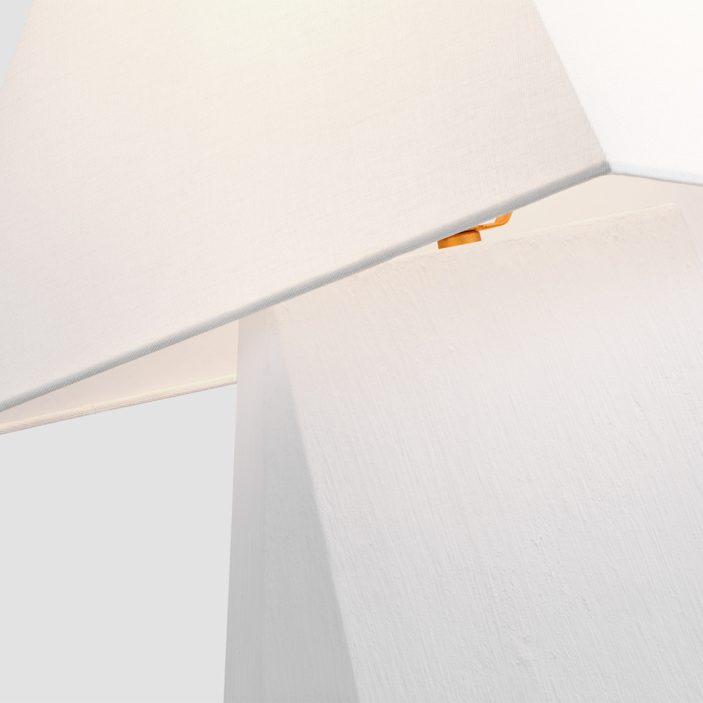 The Herrero table lamp series lends to the idea of a hand-formed artisan look. Bringing a tonal touch to the desktop or bedside, with a pyramid-style base in three finishes, then paired with a white line fabric shade. Herrero pairs contrasting materials, complementing almost any décor