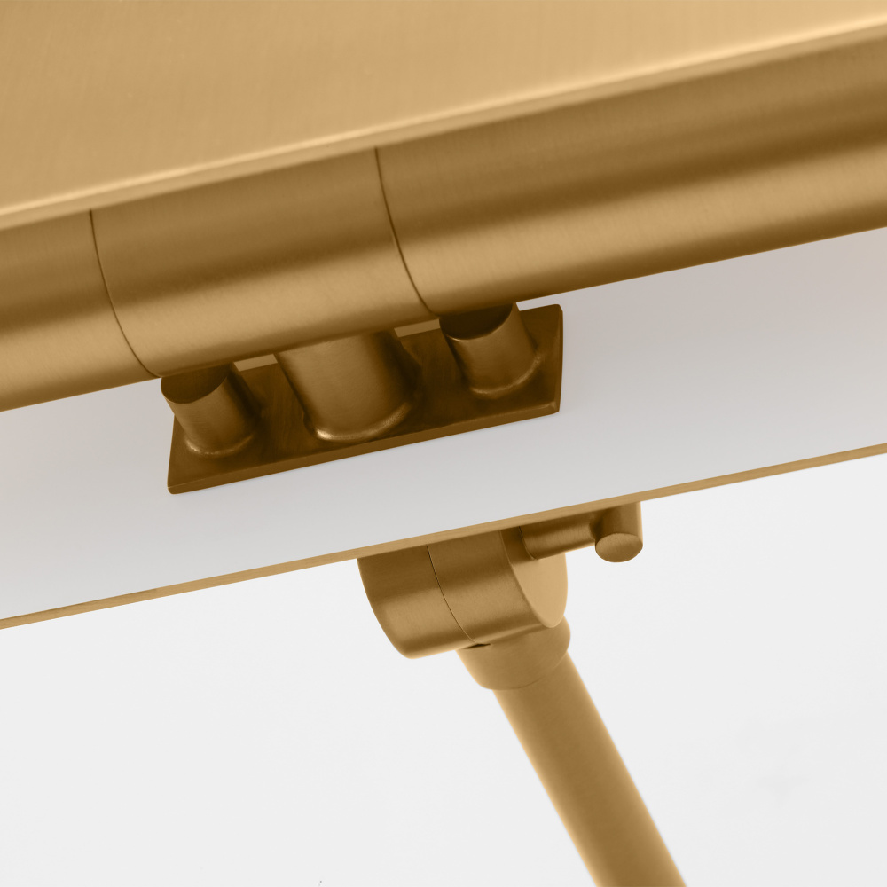 Transitional fixture with pivoting burnished brass steel shade will provide light to highlight any piece