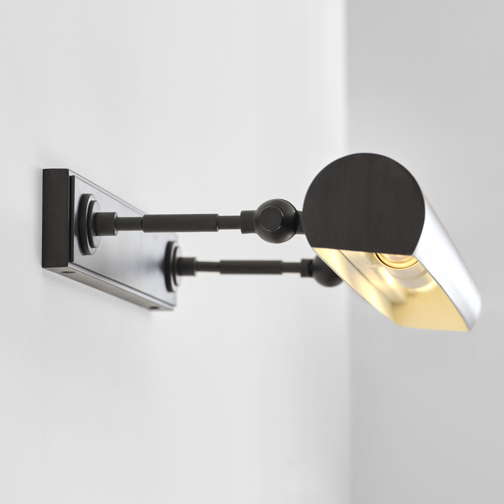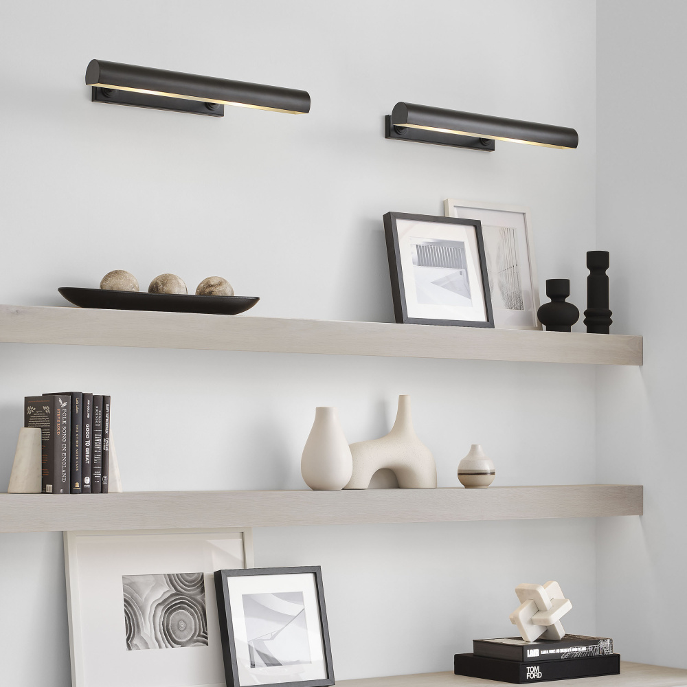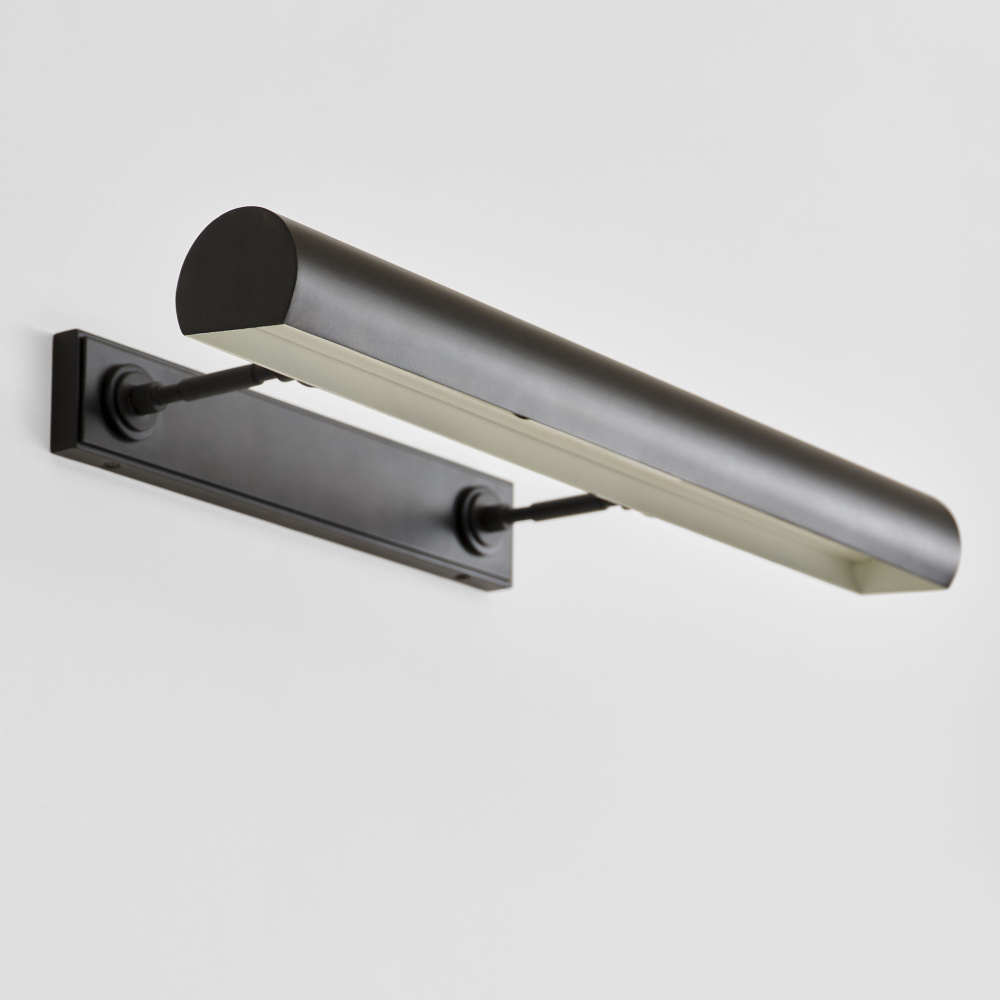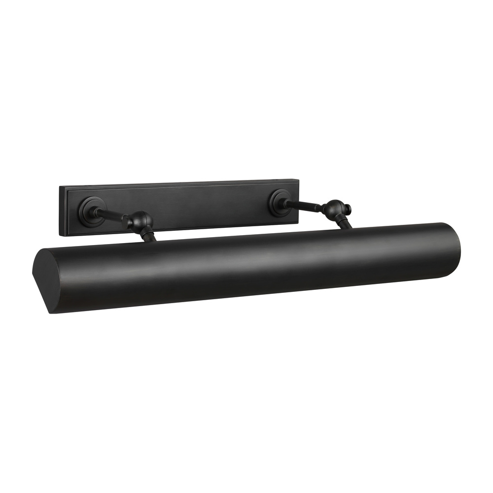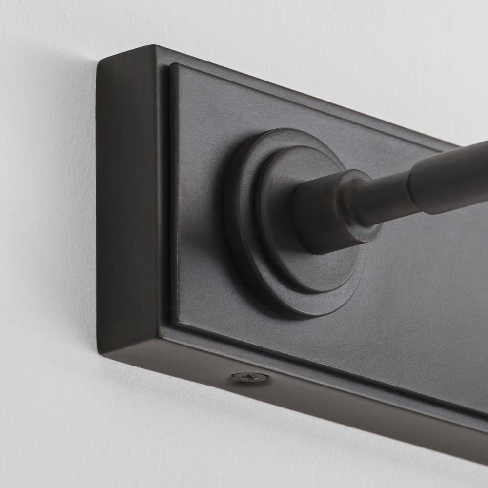 The Kenyon 24" Picture Light by Chapman & Myers were designed to be highly versatile in their application, at home in any interior. They have classic half round pharmacy shades which are mounted to a cylindrical metal stem with a differentiated stepped detailing. The picture lights have an architecturally inspired medallions where the arms mount to the rectangular backplate. Kenyon has a smooth clean metal shade that will bring the perfect light to your works of art. Available finishes include Aged Iron and Burnished Brass.