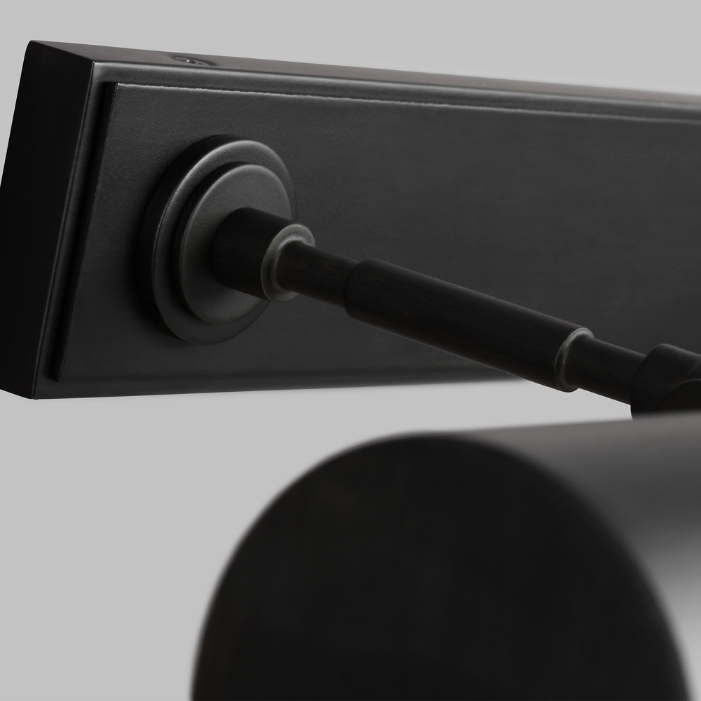 The Kenyon 30" Picture Light by Chapman & Myers were designed to be highly versatile in their application, at home in any interior. They have classic half round pharmacy shades which are mounted to a cylindrical metal stem with a differentiated stepped detailing. The picture lights have an architecturally inspired medallions where the arms mount to the rectangular backplate. Kenyon has a smooth clean metal shade that will bring the perfect light to your works of art. Available finishes include Aged Iron and Burnished Brass.