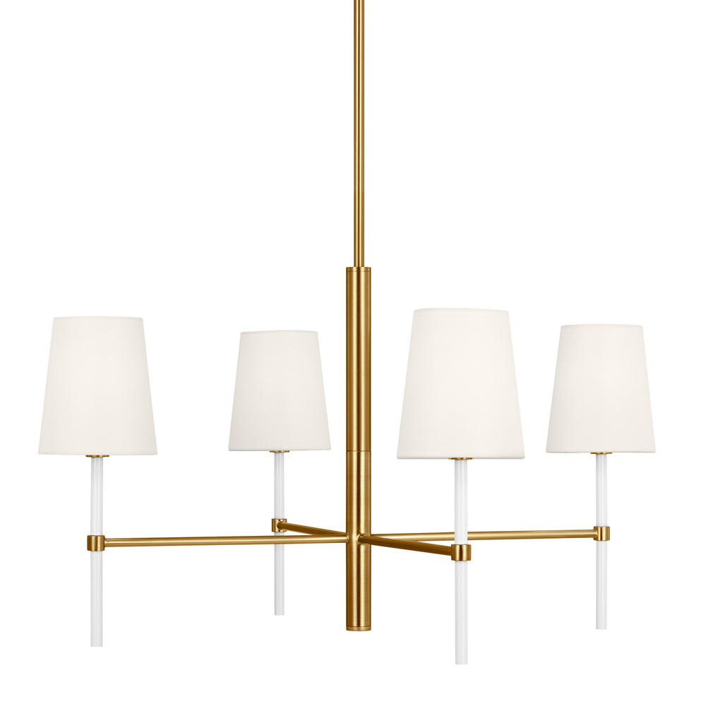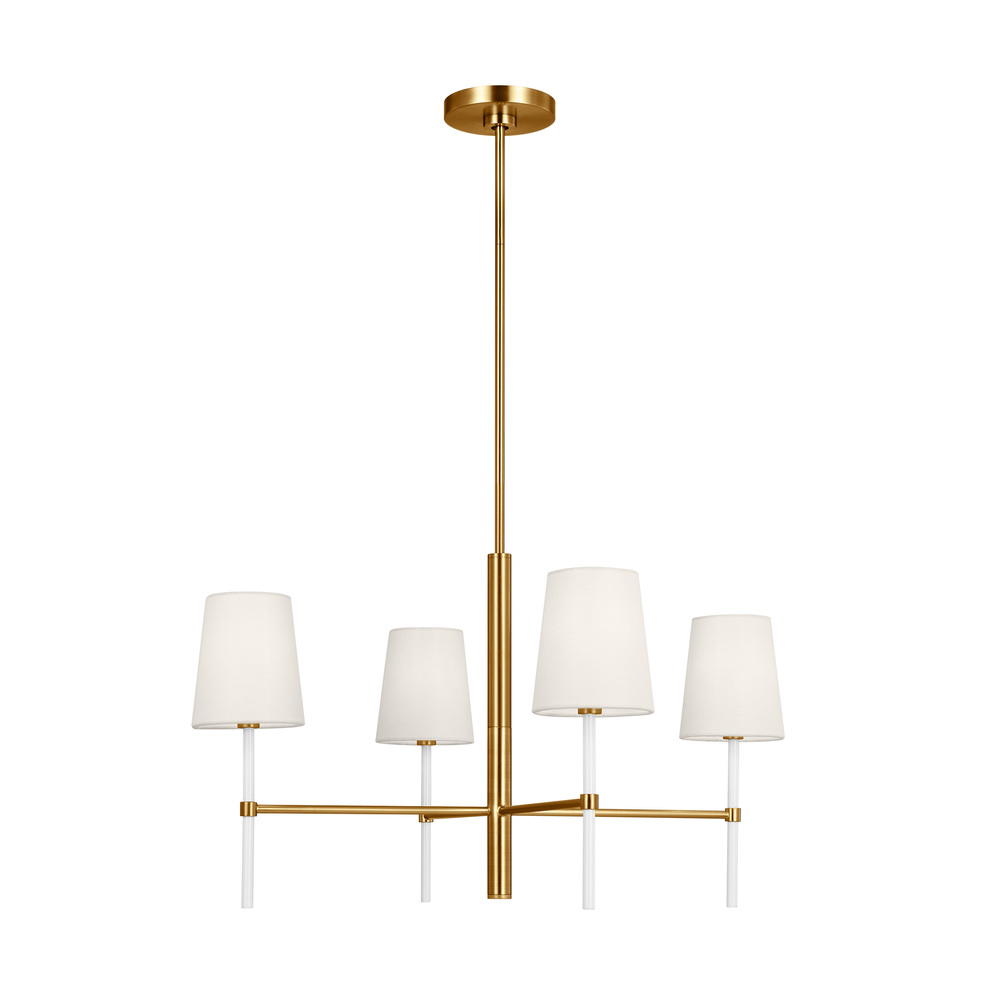 The Monroe small chandelier is inspired by graphic enameled metal jewelry and decorative accessories from kate spade with a nod to late 50s atomic era colorful designs. Monroe exhibits clean lighting profiles and dressed them up with painted sections and metal accents.