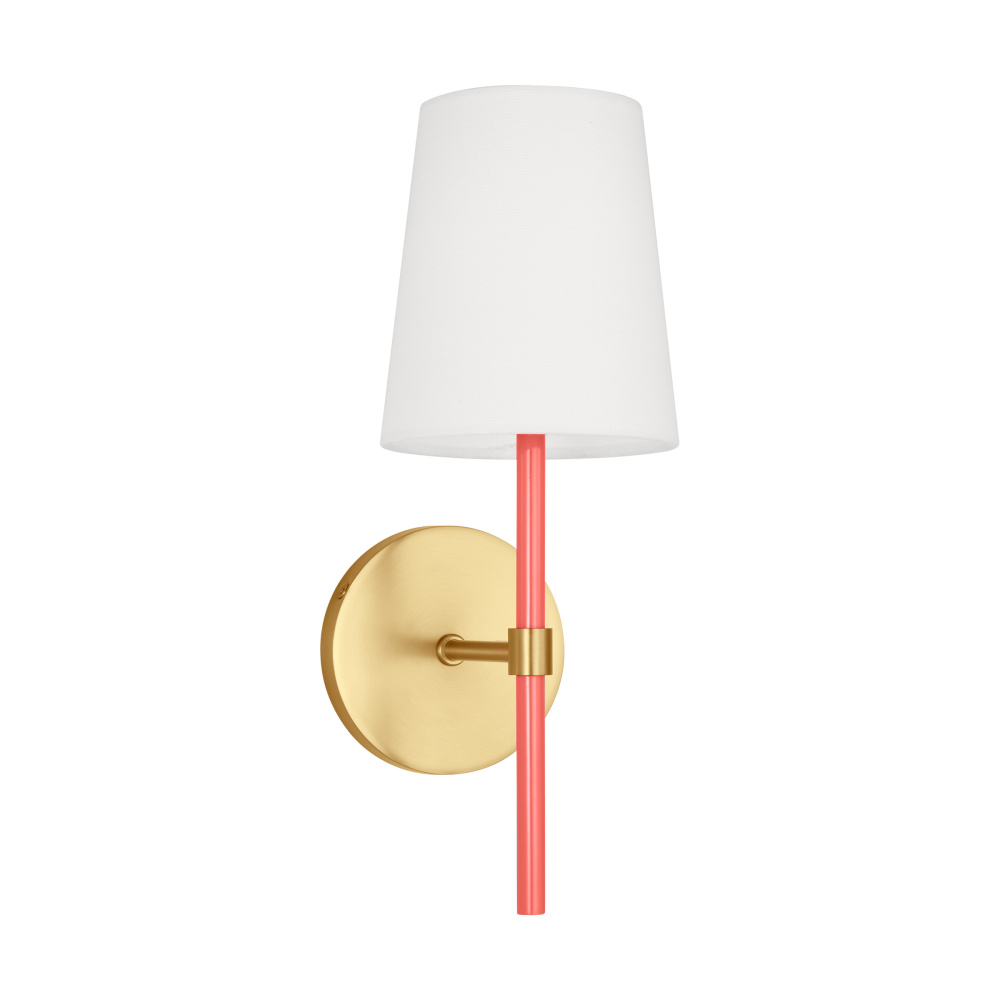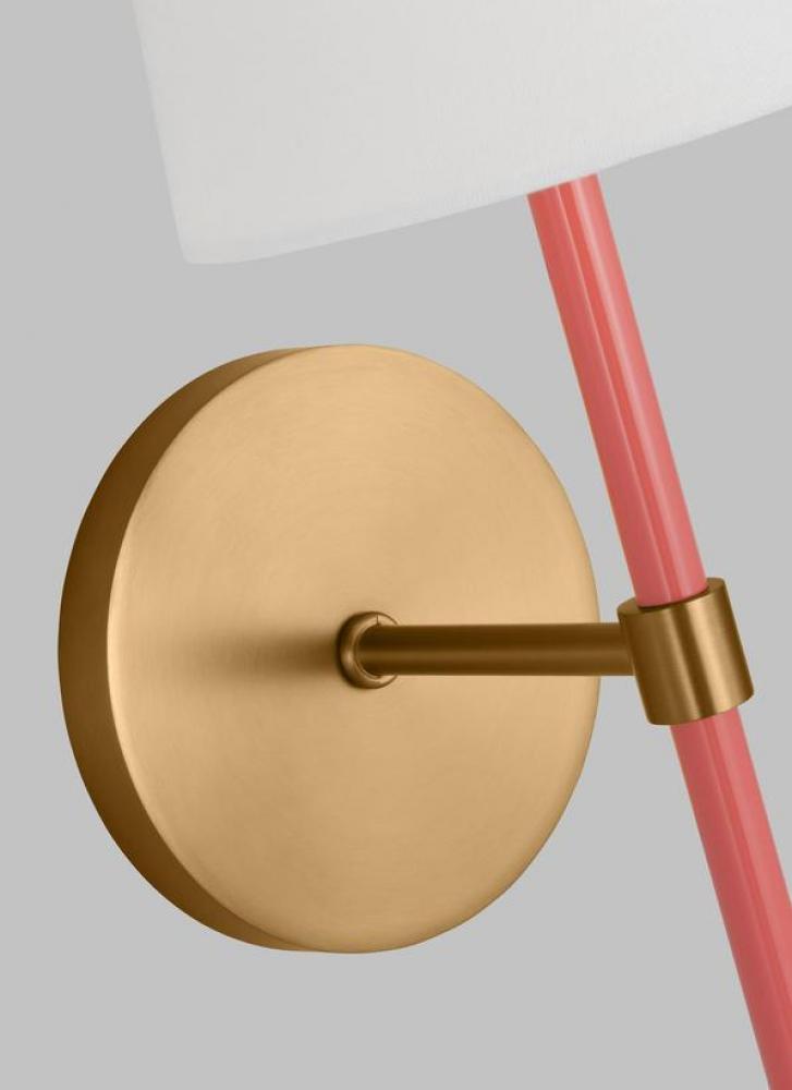 Inspired by graphic enameled metal jewelry and decorative accessories from Kate Spade with a nod to late 50s atomic era colorful designs. Monroe exhibits clean lighting profiles and dressed them up with painted sections and metal accents. With chic finishes and burnished brass accents, the Monroe wall sconce is a precise picture of refined minimalist design with a modern twist. Ideal for a bedroom, living room, den, or playroom, this floor lamp mount adds the perfect pop of color while illuminating your home with style.