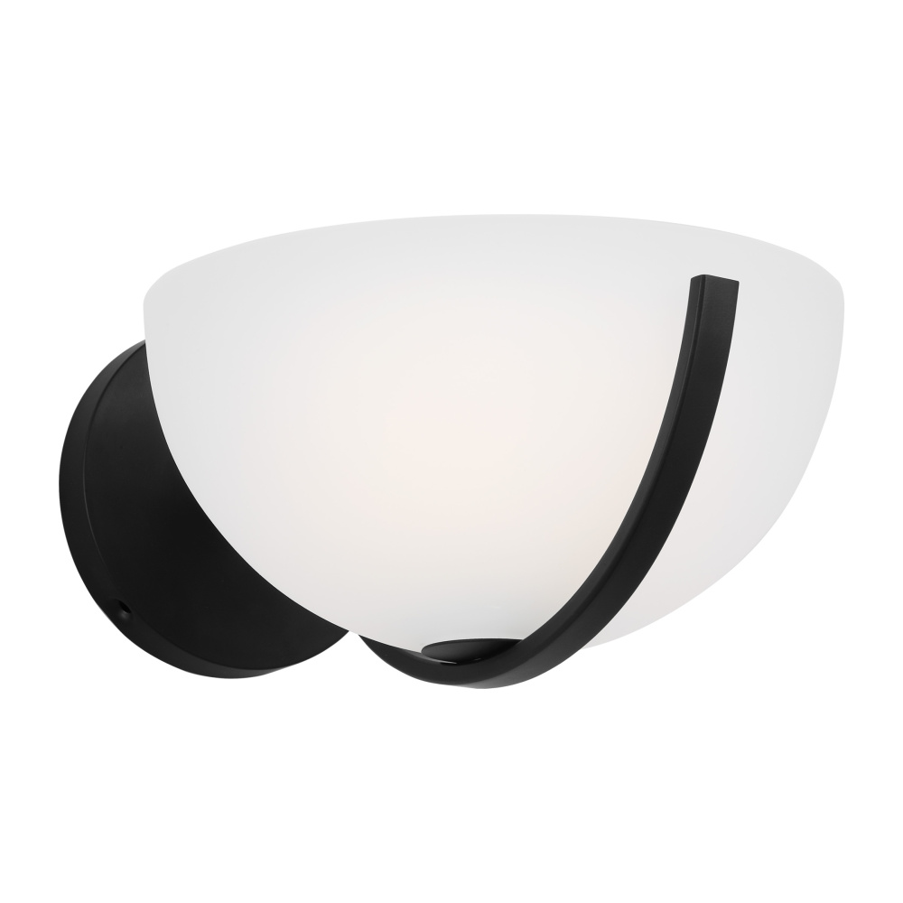 Safety listed for damp locations and sleek etched white glass shade adds contemporary elements