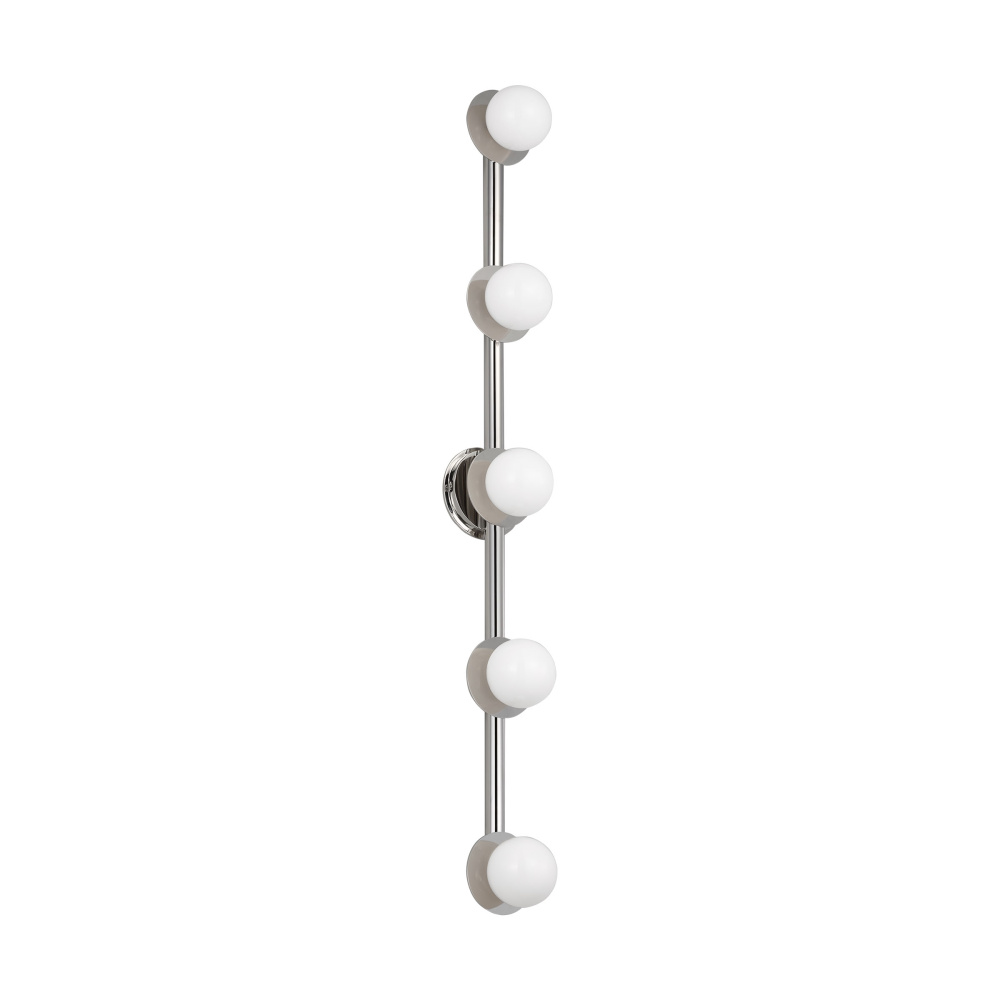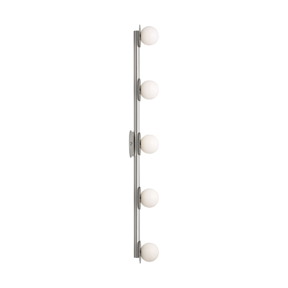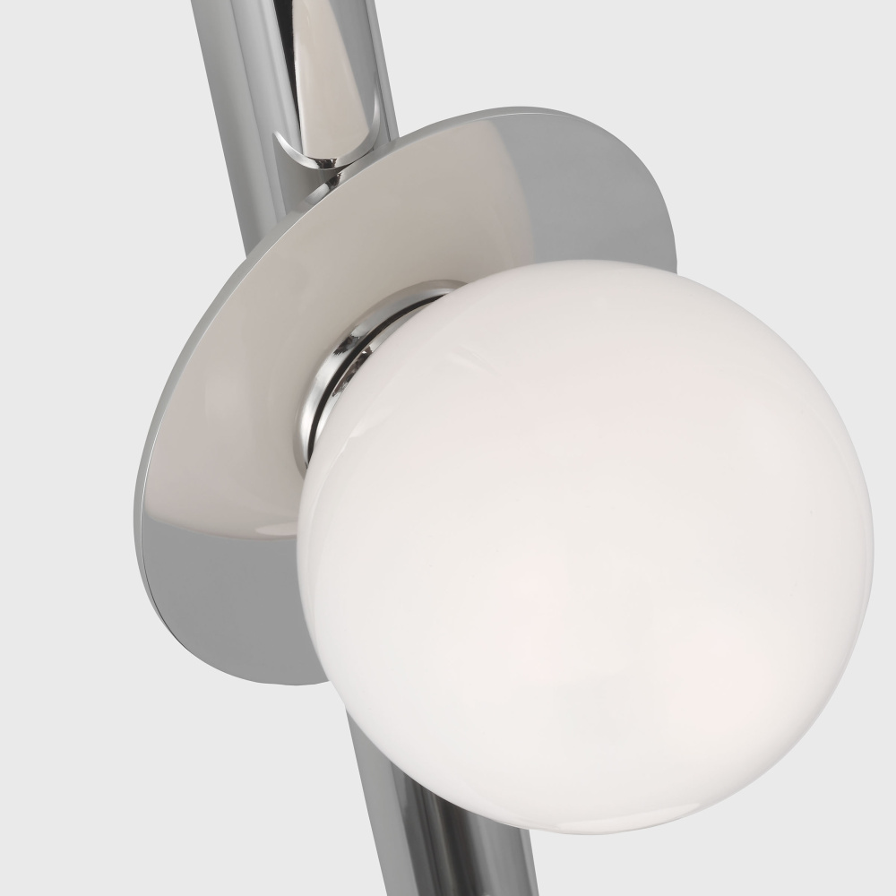 The Nodes task, ceiling, and wall lighting is minimal yet bold, highlighting Kelly Wearstler's distinctive juxtaposition of mixed-materiality and curvilinear form. Light radiates from milk glass globes set against metal discs. All fixtures can be used or without the discs. The cast canopy is available in Burnished Brass, Midnight Black or Polished Nickel. Hanging fixtures within this family feature black fabric cords, while pivot sconces can be cord and plug or hard wire.