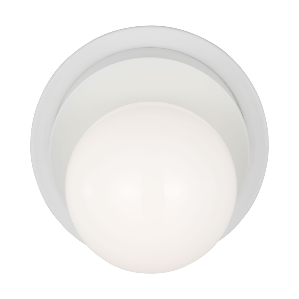Nodes task, ceiling and wall lighting is minimal yet bold, highlighting Kelly's distinctive juxtaposition of mixed-materiality and curvilinear form. Light radiates from milk glass globes set against metal discs. All fixtures can be used or without the discs. The cast canopy is available in modern finishes. Hanging fixtures within this family feature black fabric cords, while pivot sconces can be cord and plug or hard wire.