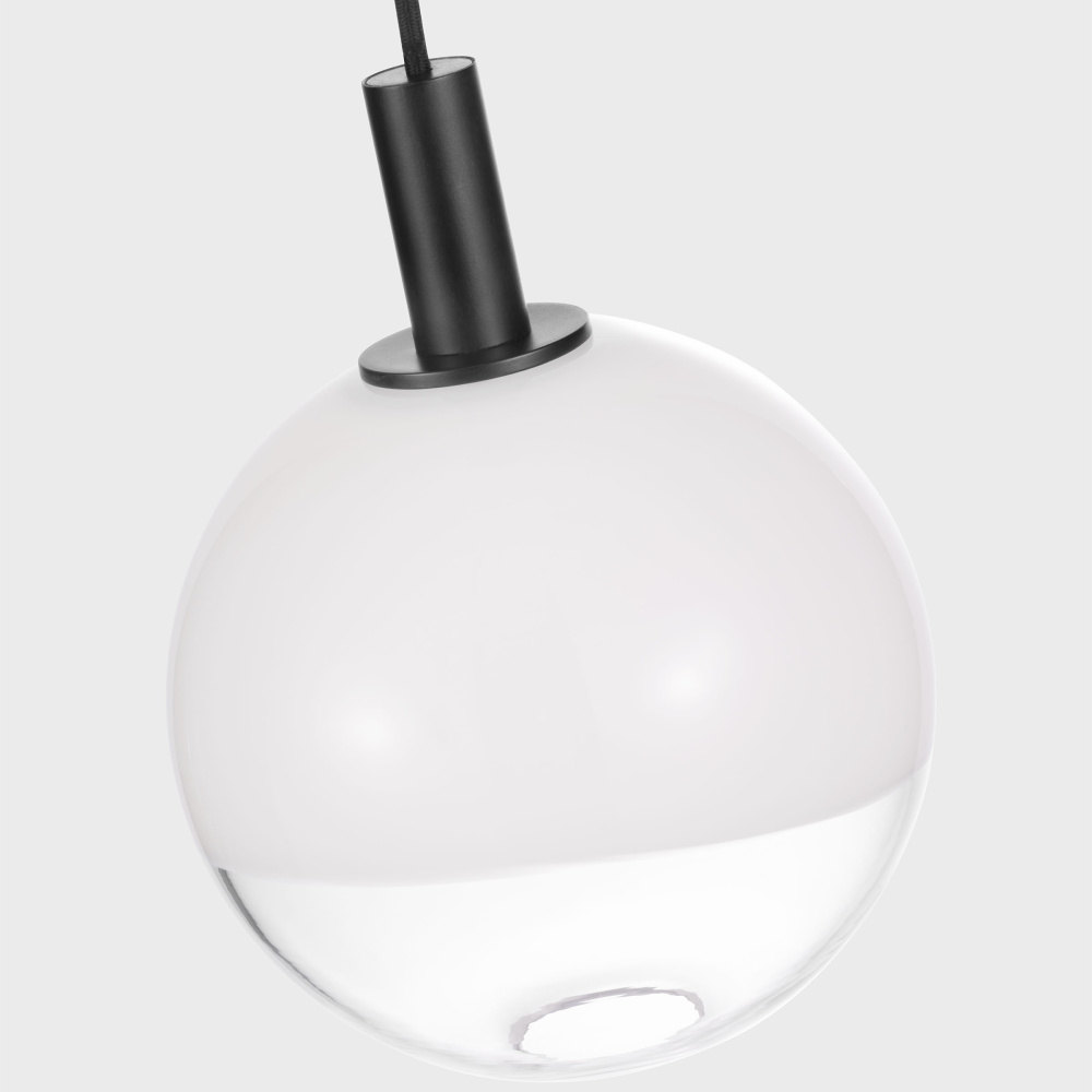 The Torian collection by Sean Lavin draws inspiration from sculptural hanging mobiles. Multiple arms with fabric cords suspend beautiful glass globe shades with an ombre effect, transitioning from milk to etched clear glass. Ideal for entryways and dining rooms, the Torian chandelier will lend a sophisticated artistic touch to interior spaces.
