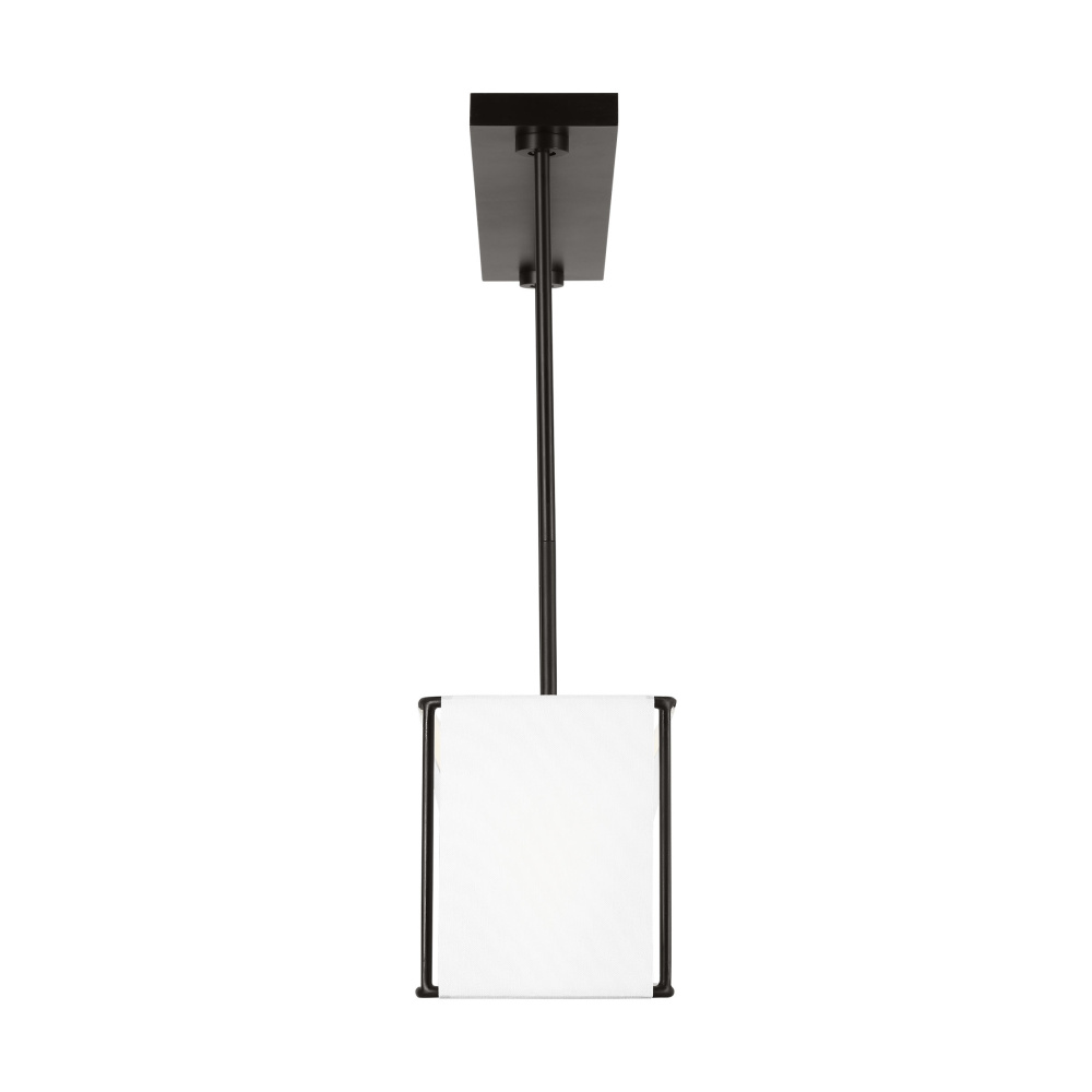 Crafted with Steel in a Aged Iron finish with white silkscreen tempered glass diffuser and white linen fabric shade