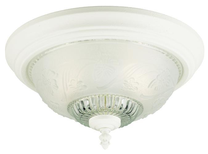 13 in. 2 Light Flush Textured White Finish Embossed Floral and Leaf Design Glass