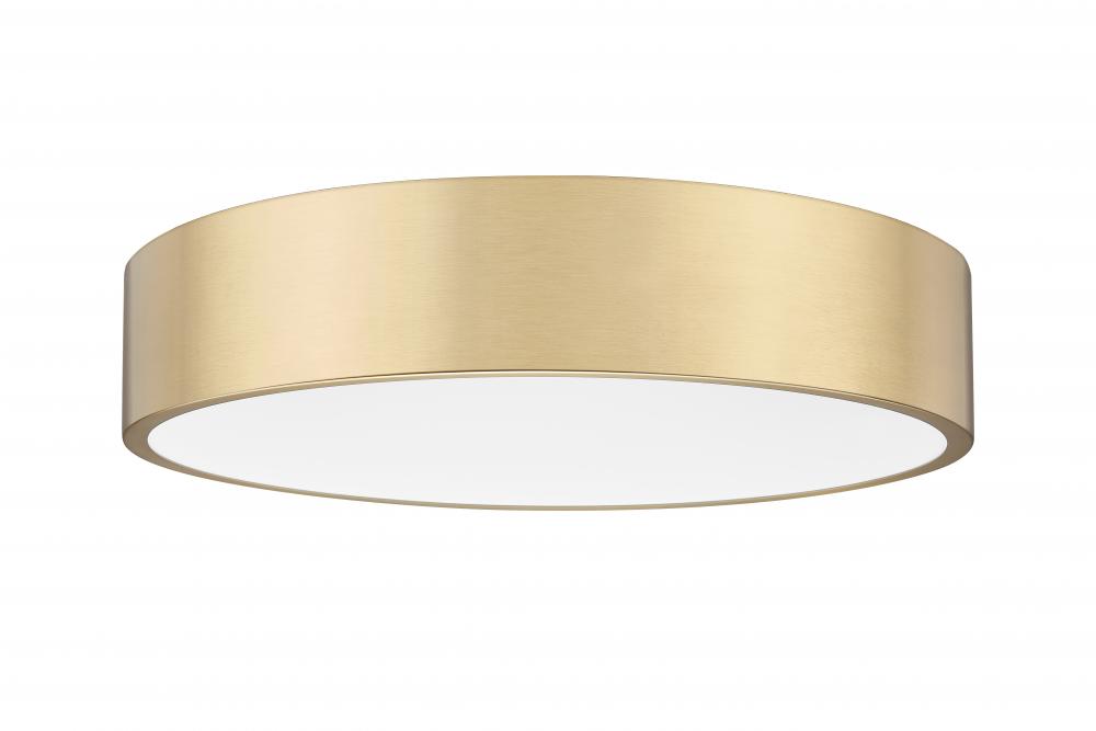 Richness abounds in a contemporary LED flush mount ceiling light that showcases a steel frame and warm, soft modern gold finish. Its a sophisticated but simple and refined design, complete with a frosted diffuser for soft, inviting illumination without harsh glare. The integrated LED light source is dimmable and energy efficient, complete with five light color settings that add a custom effect to the fixture.