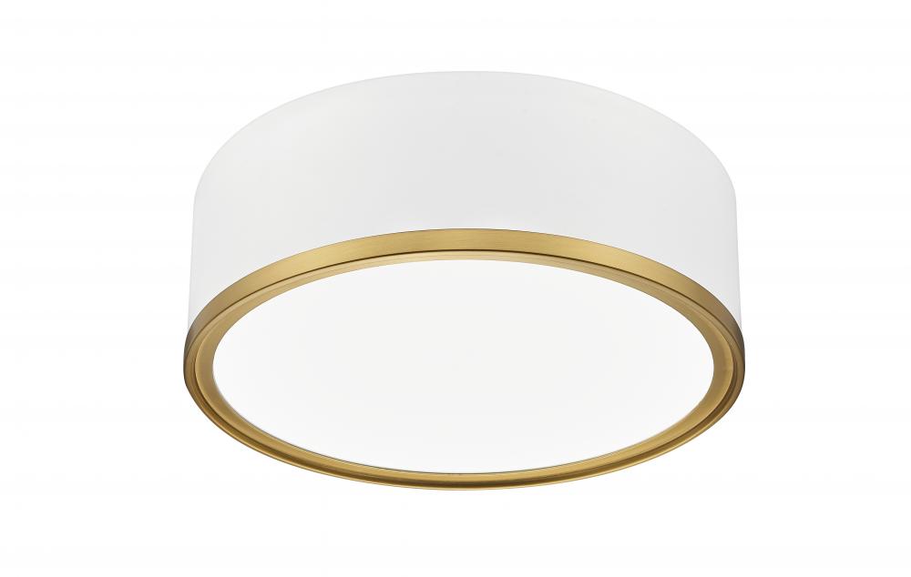 Cool matte white and warm modern gold create a compelling finish combination for this contemporary flush mount LED ceiling light. Its dimmable and energy efficient, complete with a frosted diffuser for easy, inviting ambiance in a hall, den, entry, or living area.