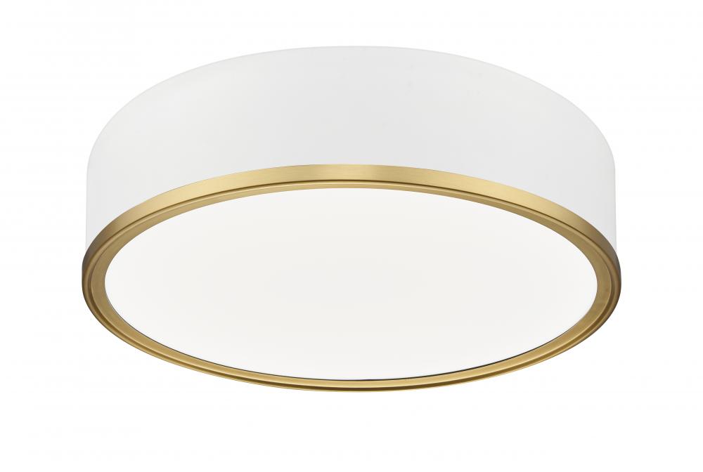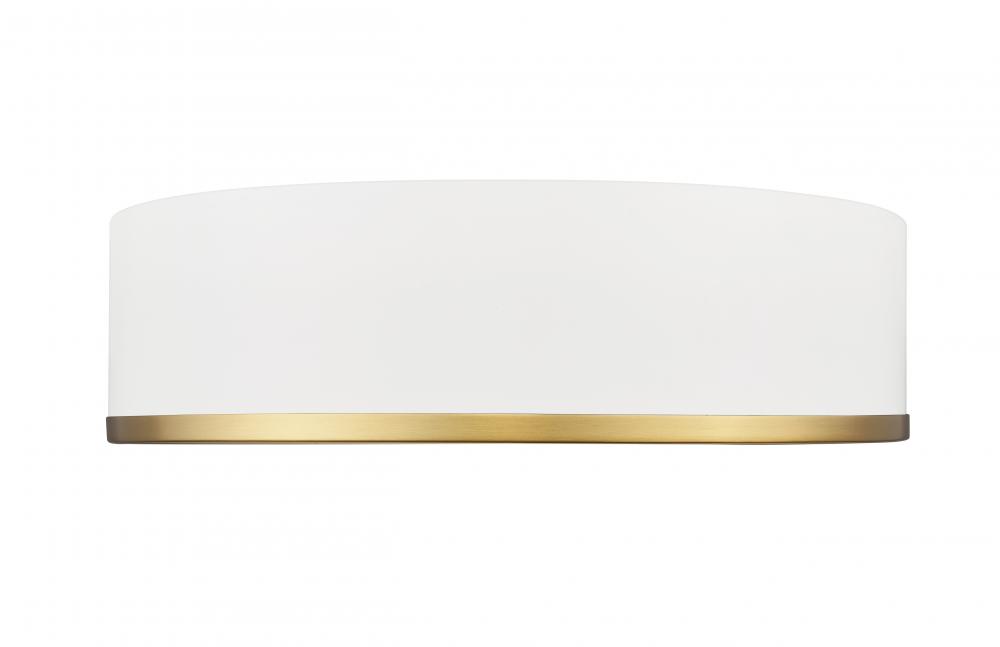 Modern gold finish banding highlights the cool matte white finish featured on this contemporary flush mount LED ceiling light. Energy efficient and sleek in design, it lends a halo-like effect over halls, bedrooms, and living spaces. The integrated LED is energy efficient and color selectable to ensure the perfect ambiance for every occasion.