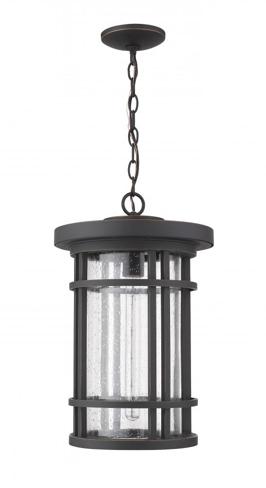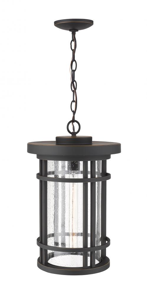 Sleek style meets classic charm in this outdoor hanging light. Clean lines in a warm rubbed bronze hue transform spaces with style.