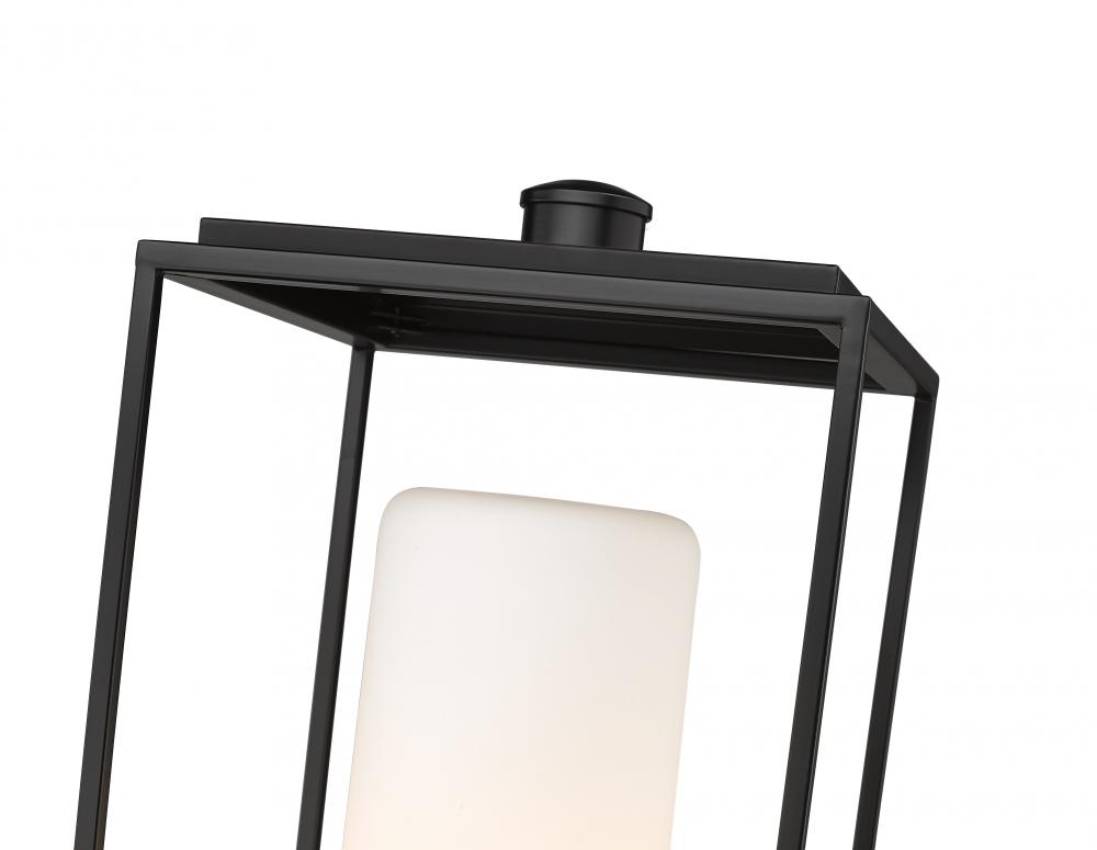 With a romantic candle motif adding artisanal vibes, the Sheridan one-light outdoor pier mounted fixture brings elegance and village inspiration to a custom landscaped space or walkway. Minimalist design elements create a boxy open lantern-style frame and a flared base, both fashioned of black finish steel. A white opal glass cylinder shade turns up the volume on glowing ambient lighting.